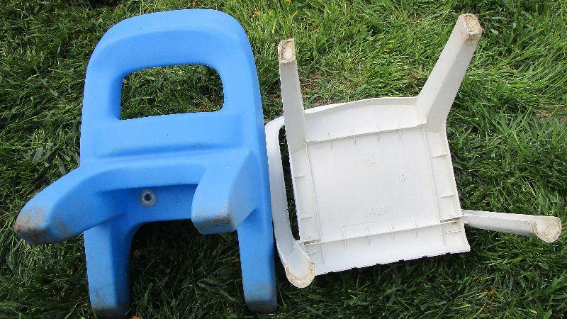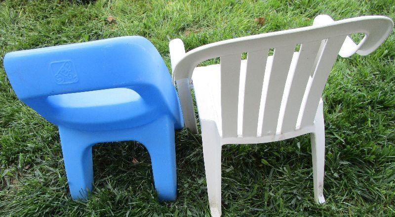 Blue chair is a Step Two chair; White chair is a Sun Craft