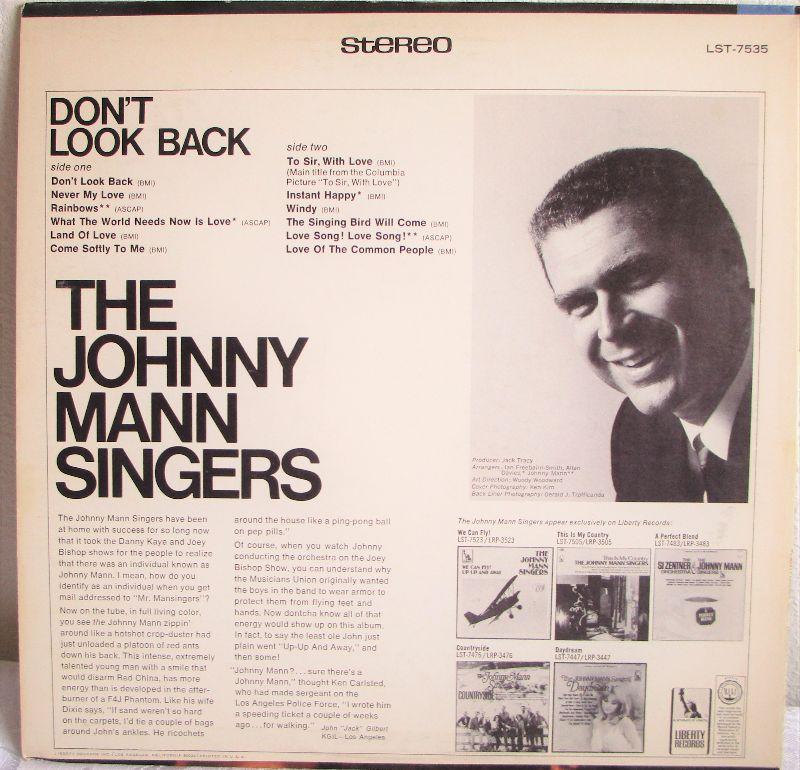 #43 Vinyl Record Album, Don't Look Back, Johnny Mann Singers