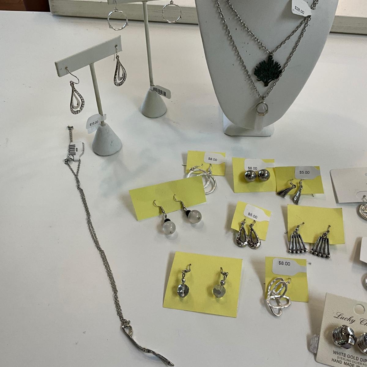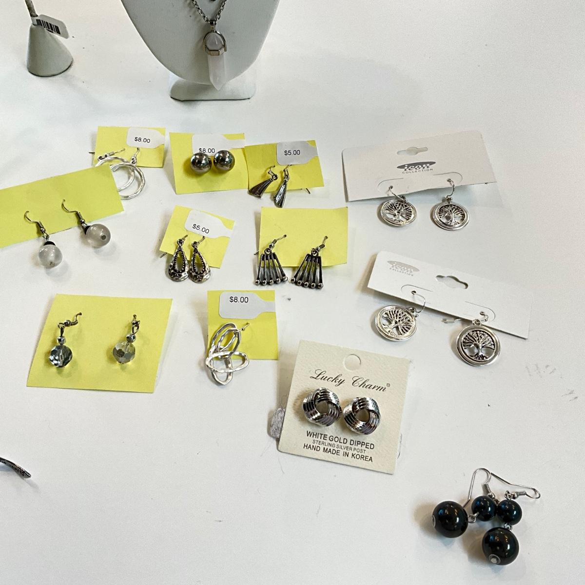 Several pairs of silvertone earrings
