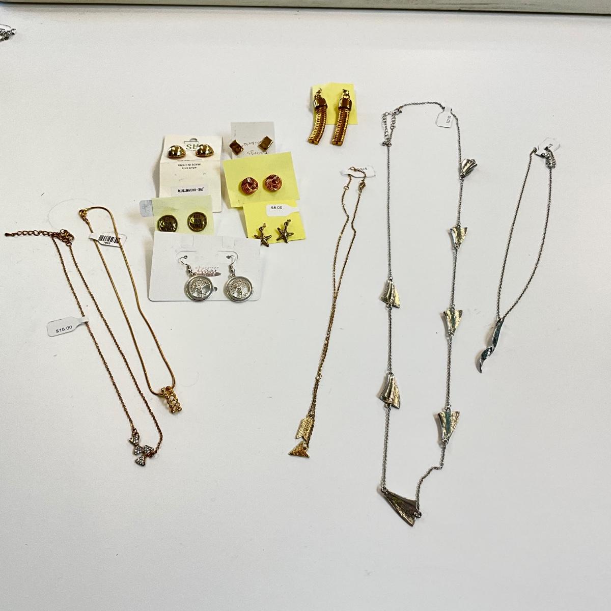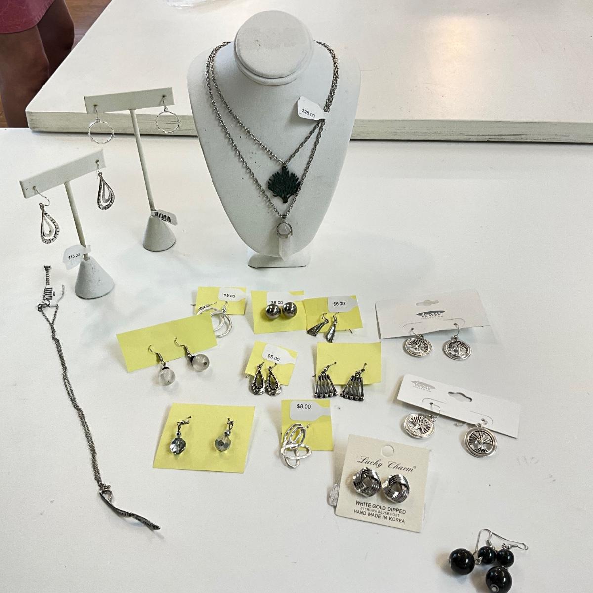 430 Lot of Silvertone Earrings and Quartz Necklace Lot