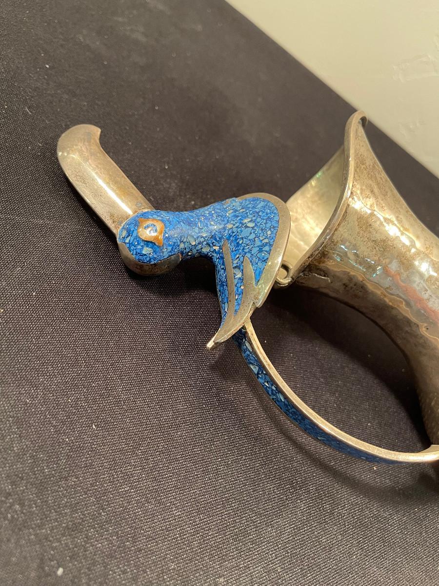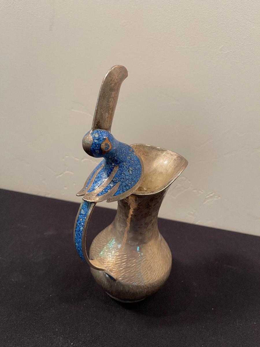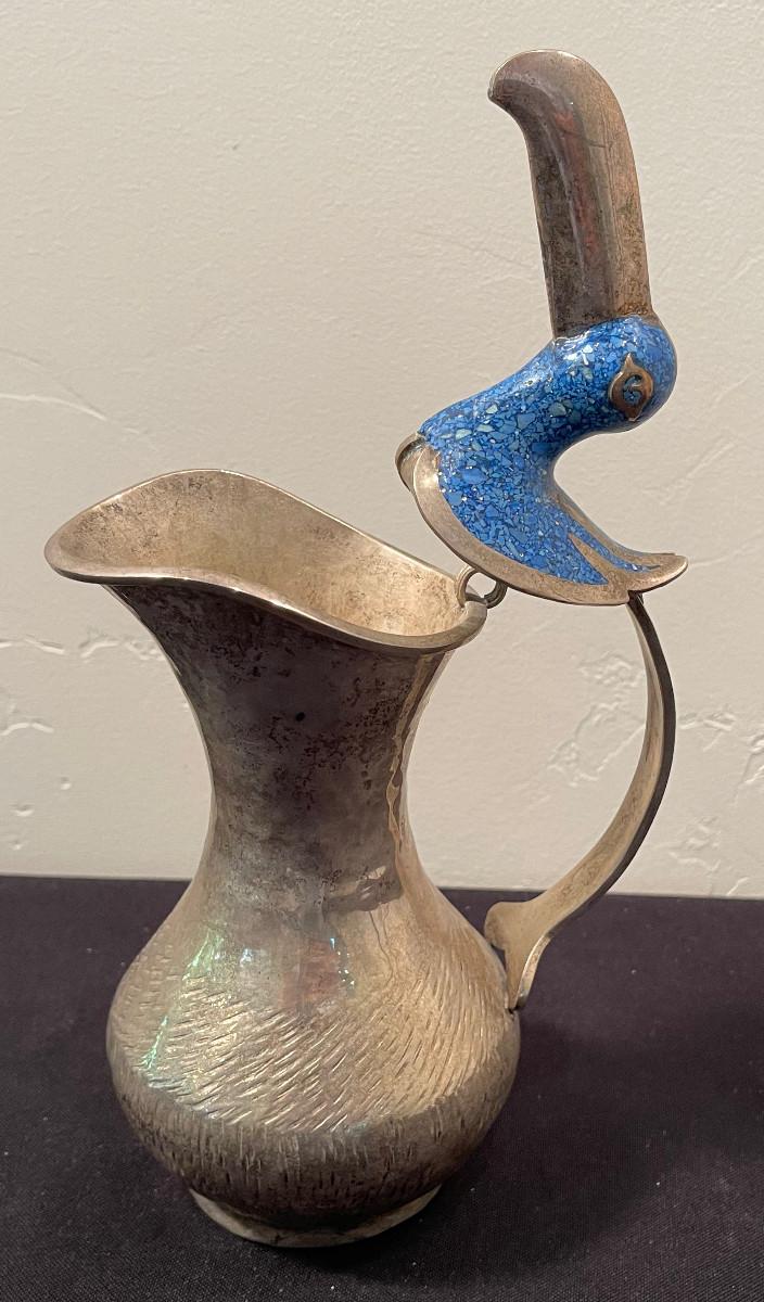 #431 Silver Plated Ewer / Toucan Made in Mexico Inlayed