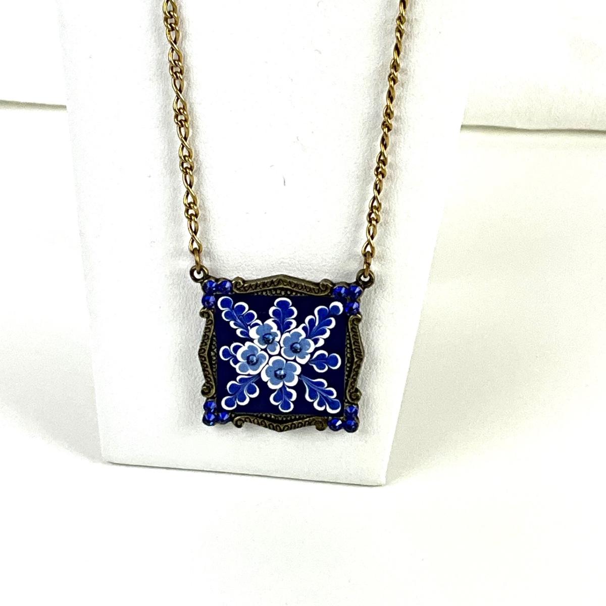 433 Anna Koplik Blue Necklace with Swarovski Crystals