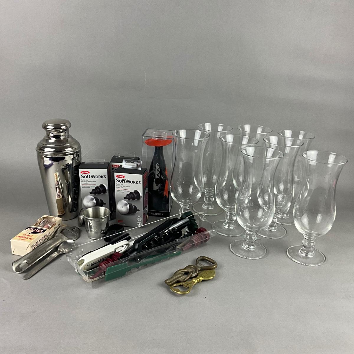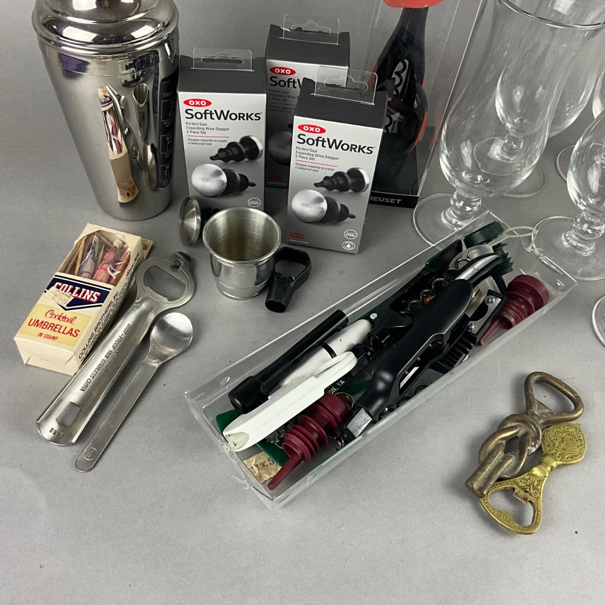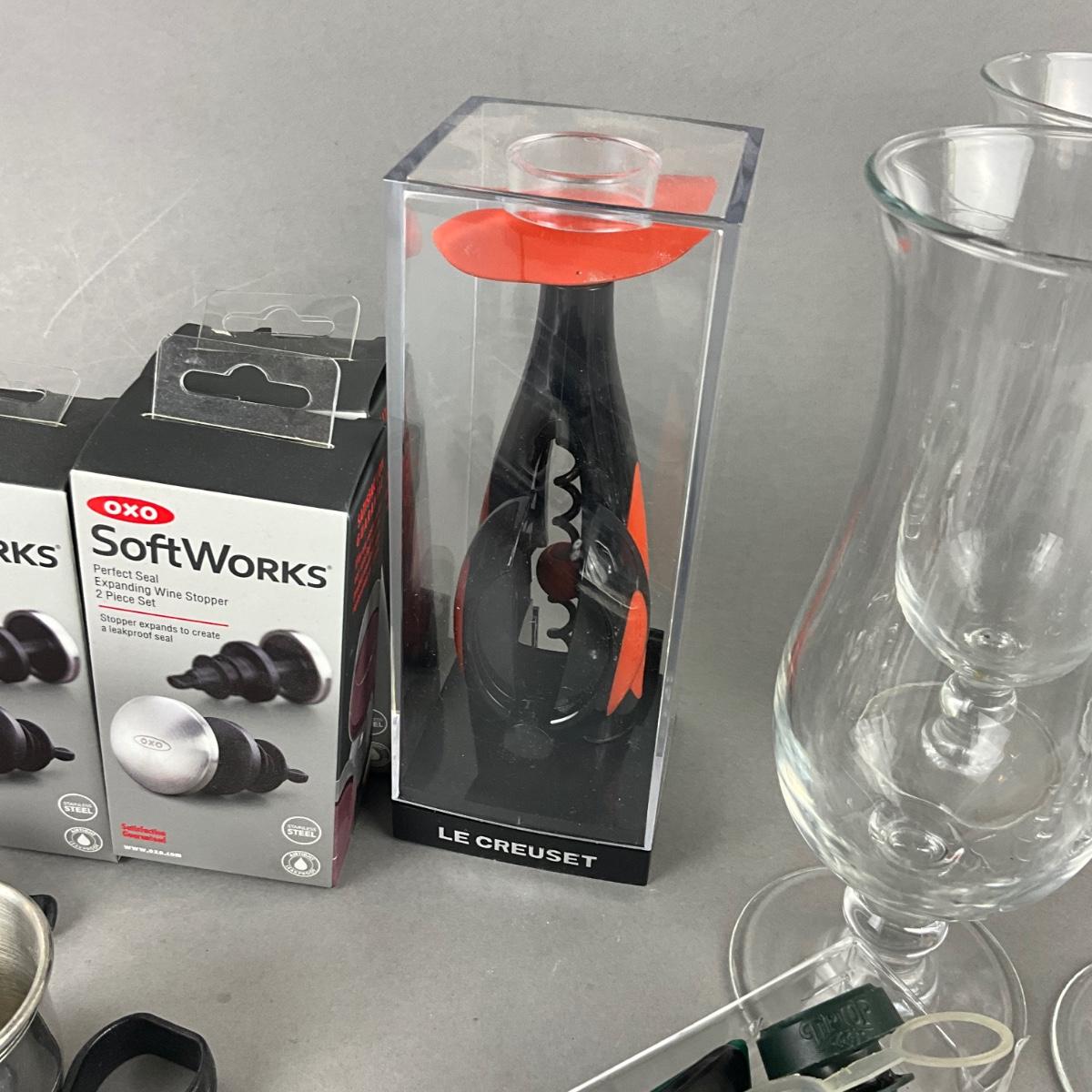 433 Lot of Le Crueset Bottle Opener with Colada Glasses