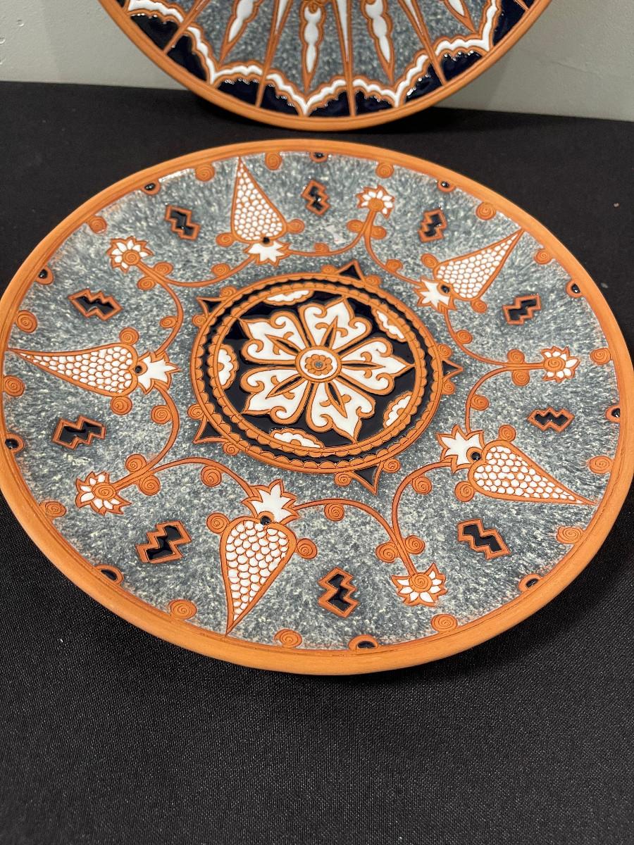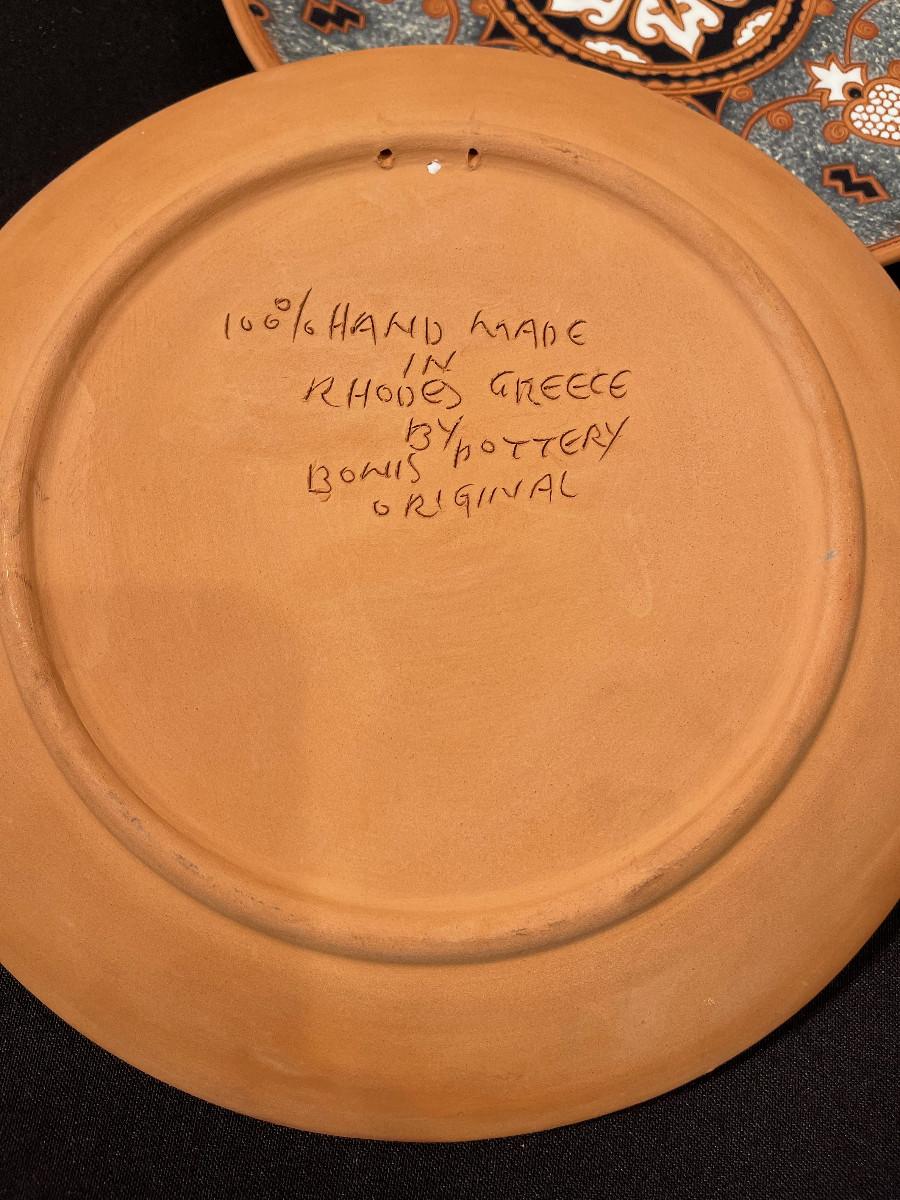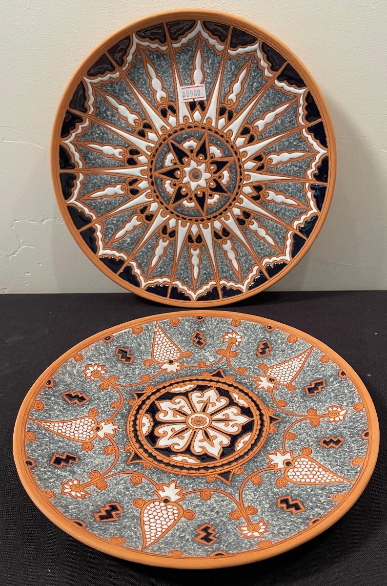 #434 2- hand made Terracotta Plates, Rose Greece