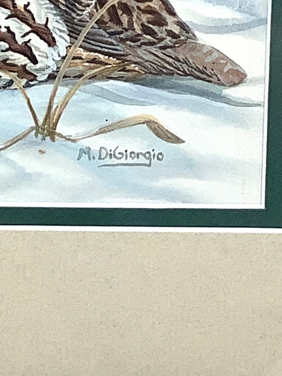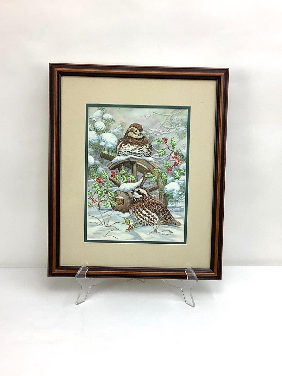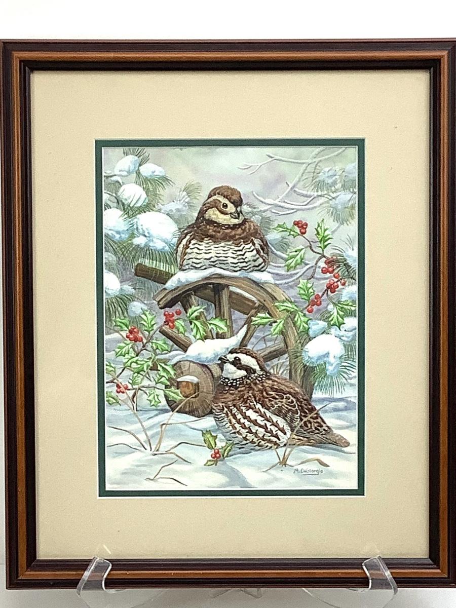 The framed holiday print is by M. Digiorgio, measures 18" x 14".