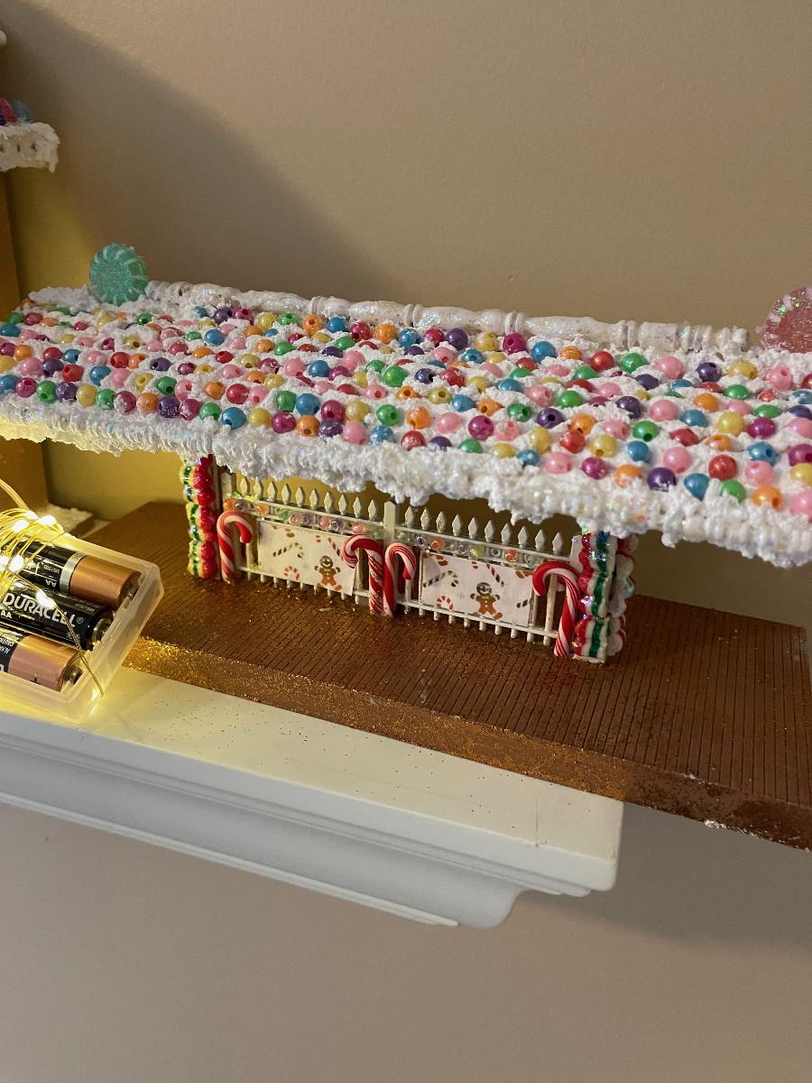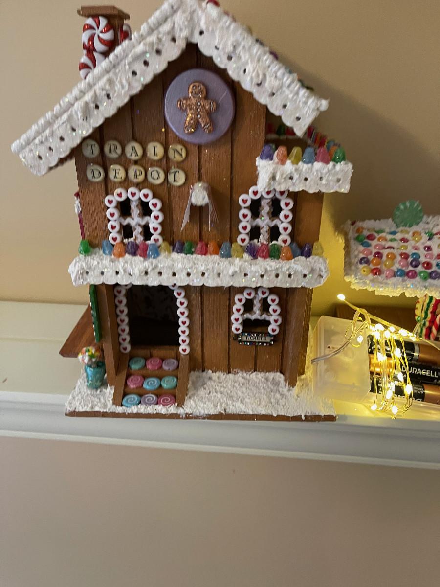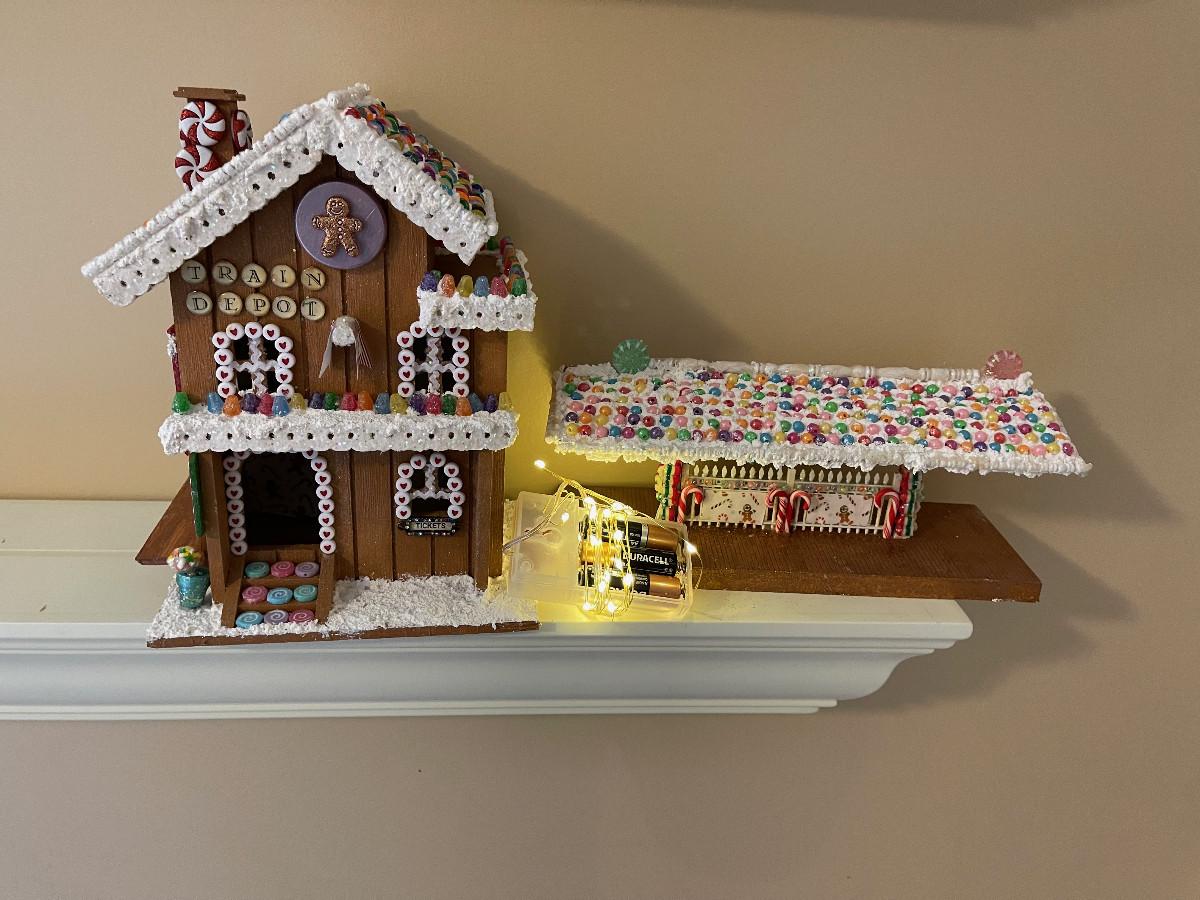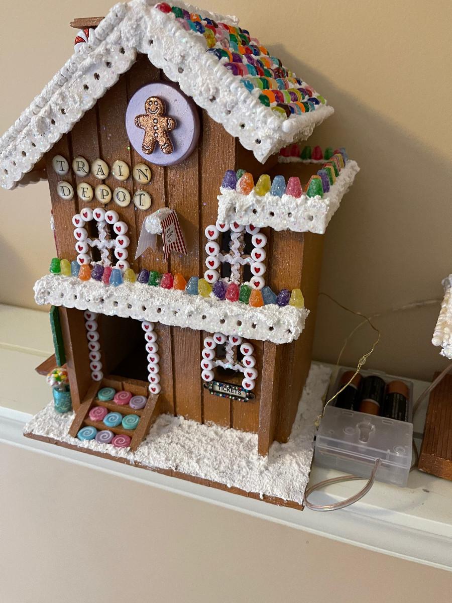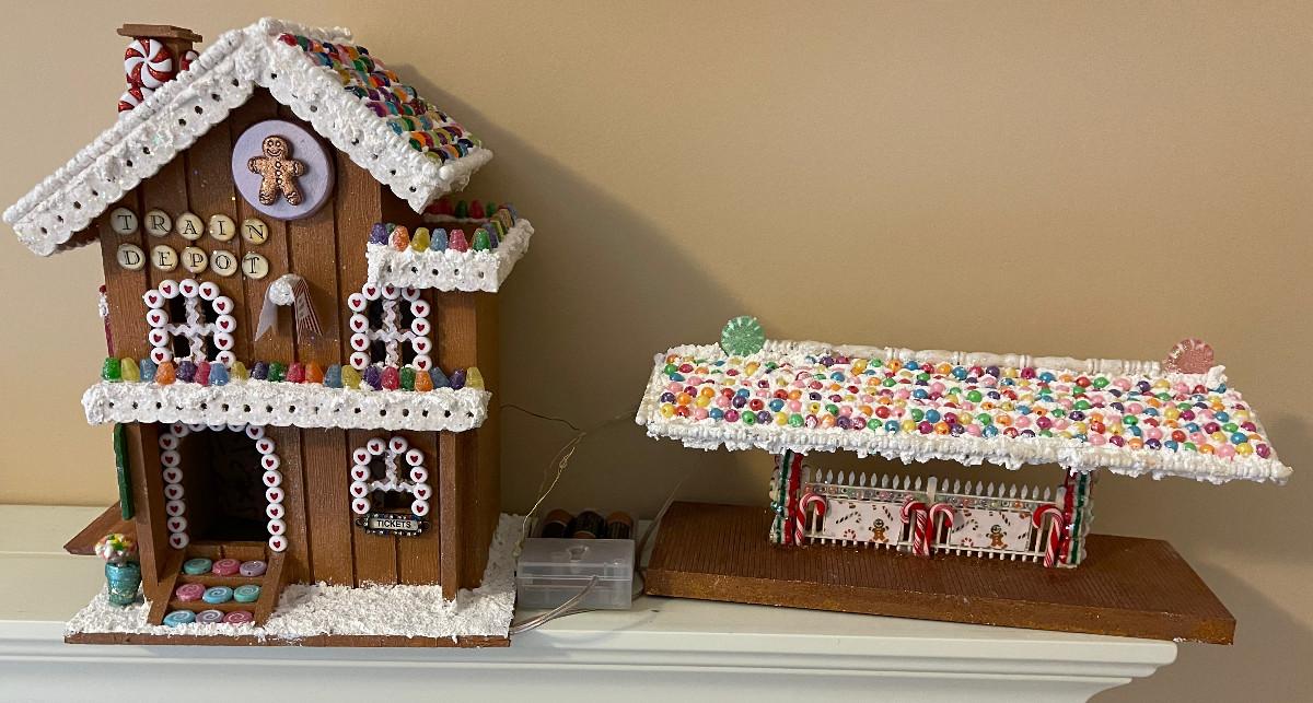 #435U 2 Gingerbread House Train Station with Lighting