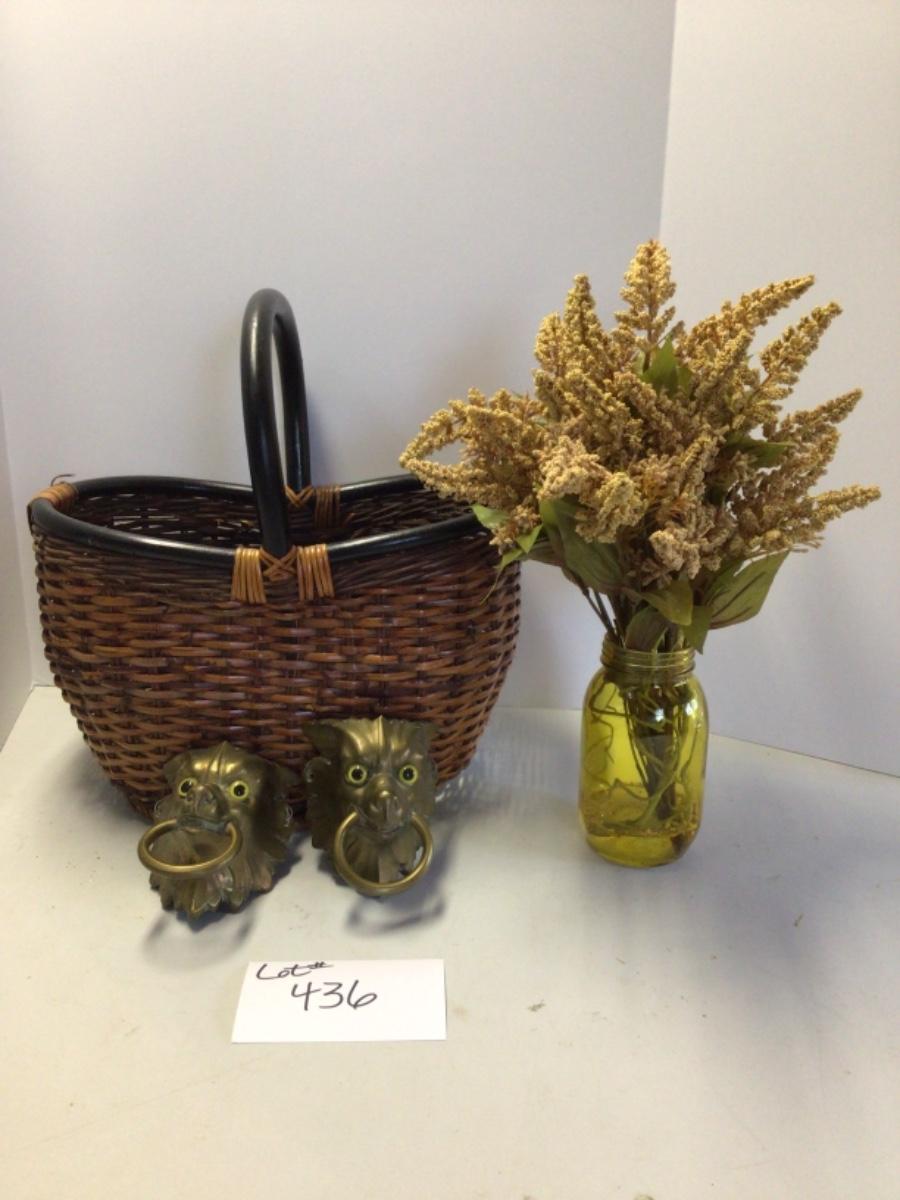 436 Basket , Brass Lion Head Decor, Artificial Flowers