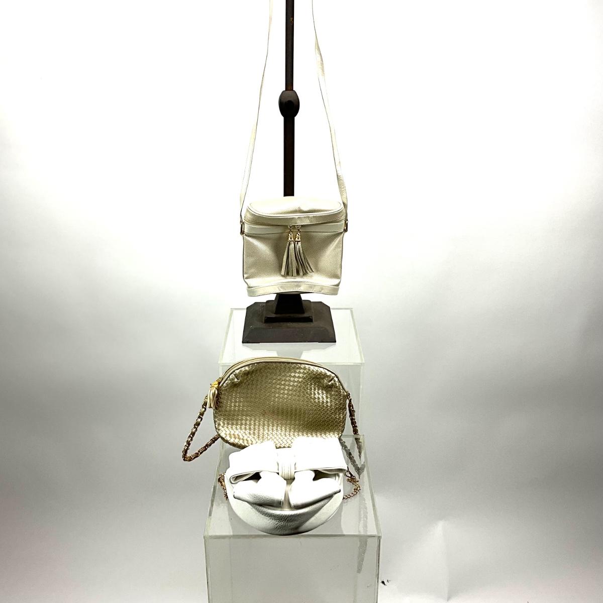 436 Stuart Weitzman , and Golden Weave Leather Bag, White Bow Round Purse