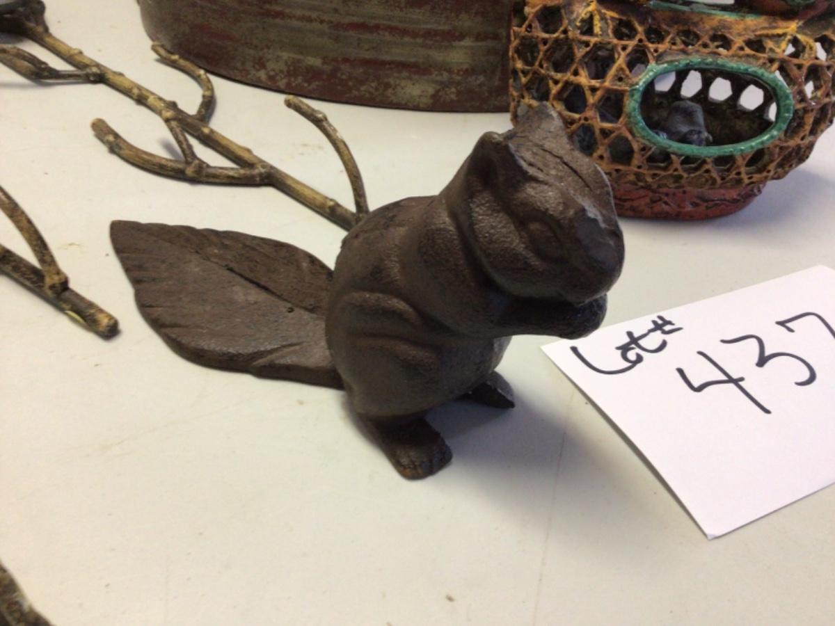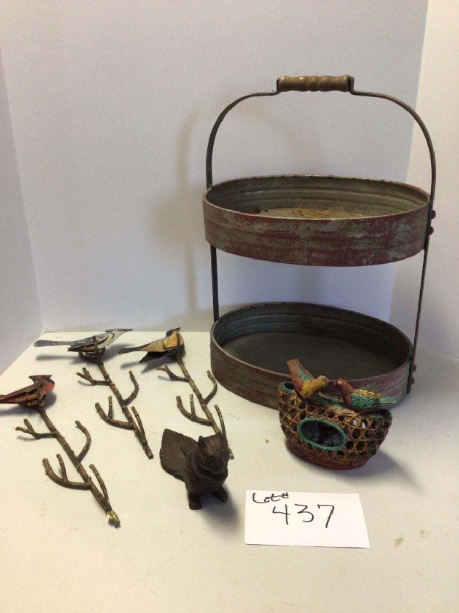 437 Two Tier Stand with Metal Bird Hooks & Squirrel Door Stop