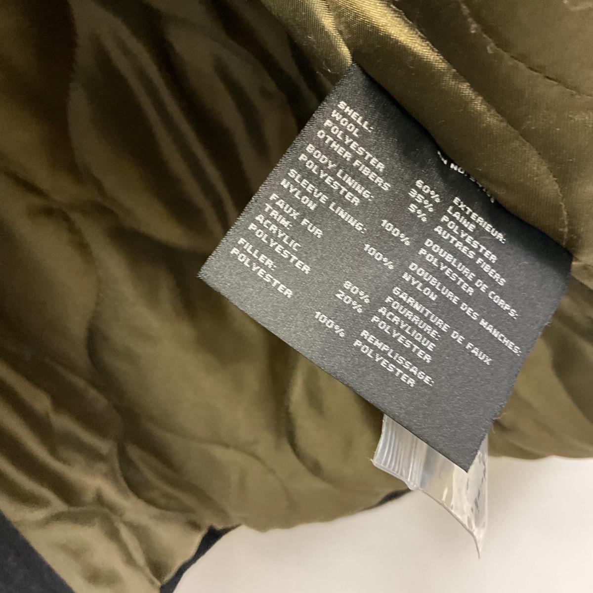 Shell 60% wool, lining 100% polyester, sleeve lining 100% polyester, faux fur.