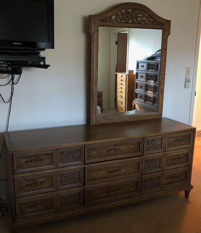 #438  Mediterranean  9 Drawer Dresser with a Large Mirror