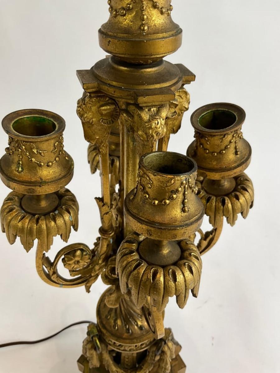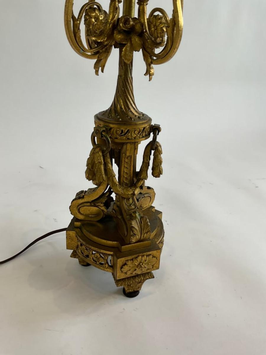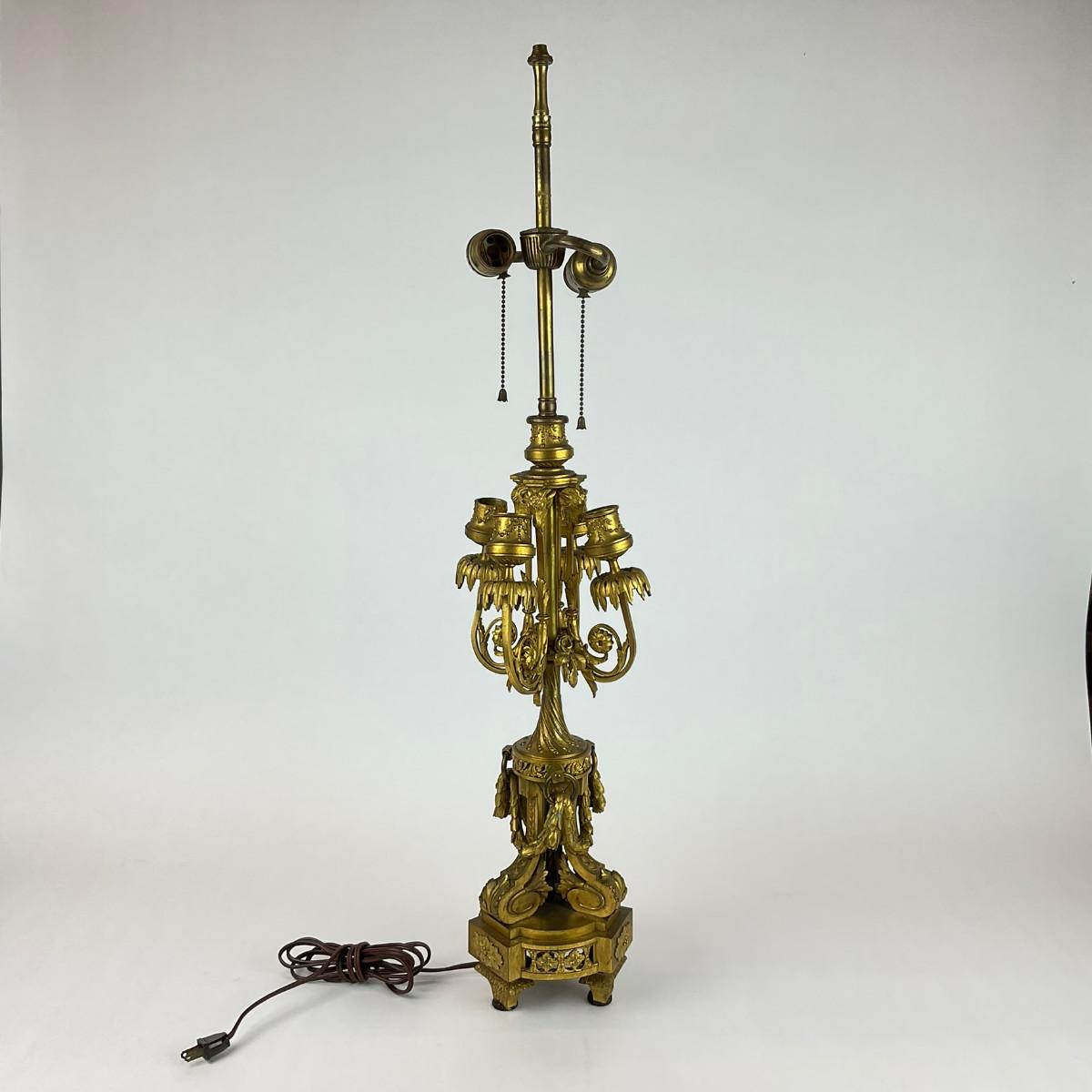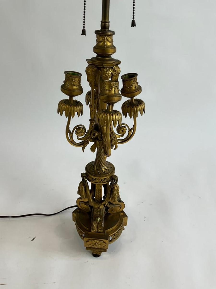 Beautiful Heavy Gilt Bronze Candelabra Lamp One arm on lamp needs to be reinforced. Has been bent