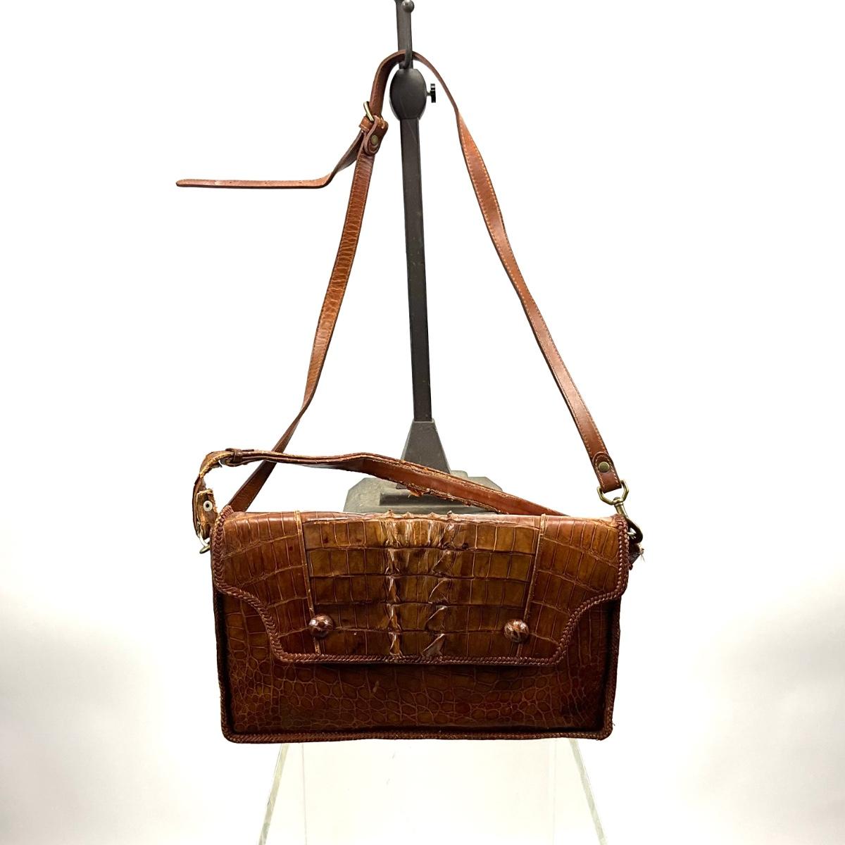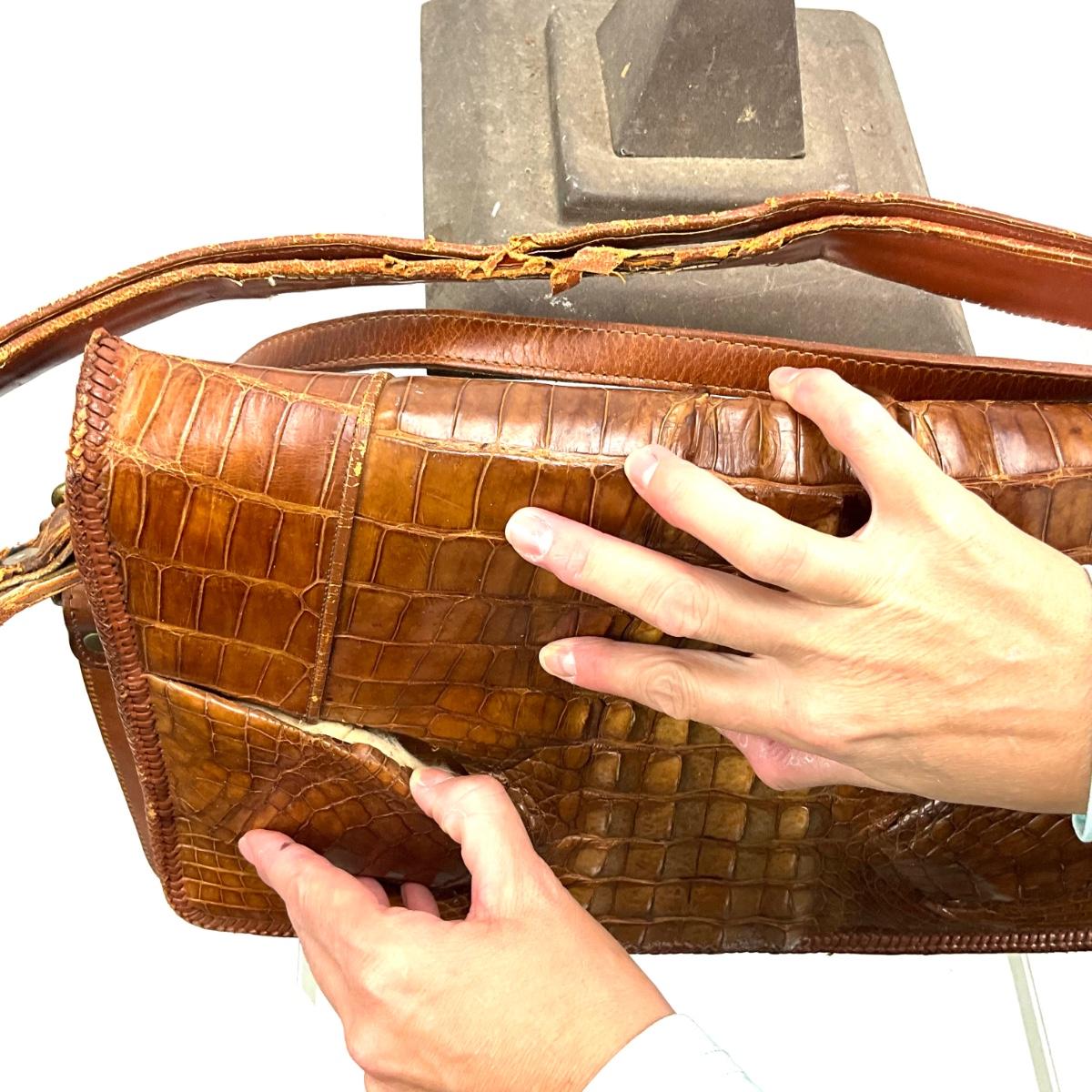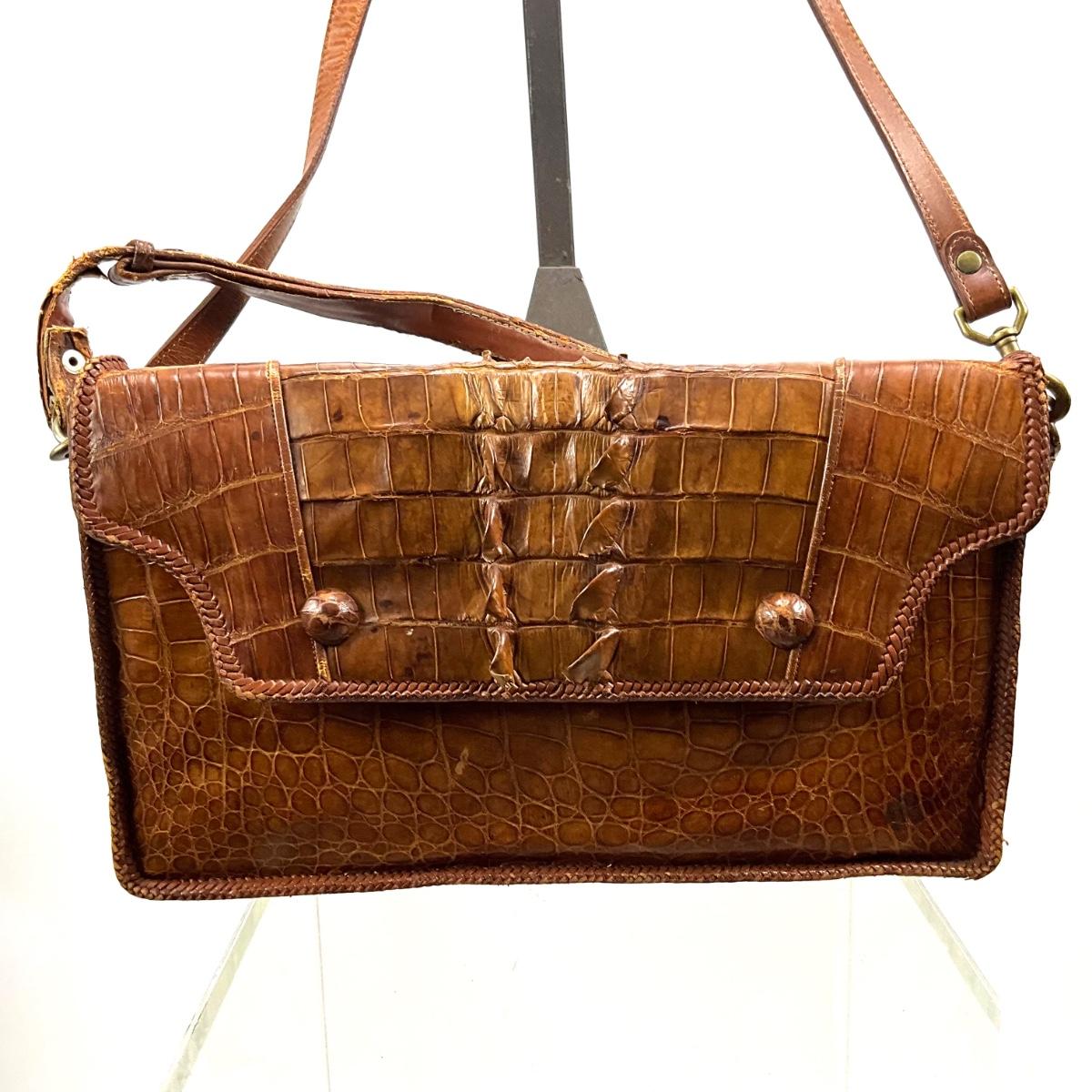 439 Vintage Crocodile Handbag with Worn Handles AS-IS