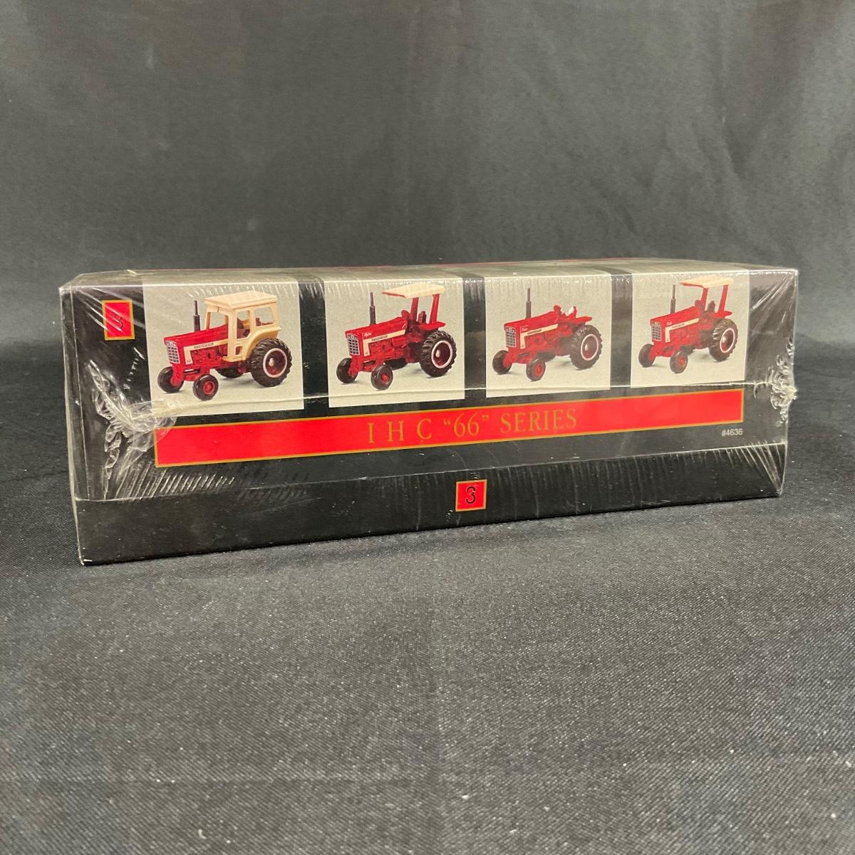 One sealed ERTL 1/64 scale IHC 66 Tractor series #3 including a 966 with deluxe cab, 966 hydro with 2 post rops, 1066 turbo, and 1466 turbo with 2 post rops. Please see photos for details and condition. Any condition statement is given as a courtesy to a client, is an opinion, and should not be treated as a statement of fact. Reference to condition written, oral or within a condition report shall not be regarded as a full account of condition and may not include all defects, alterations, or restorations. Absence of a condition report does not imply a lot is flawless or lacking imperfections or damage. Katherine’s Auction & Appraisal Service shall have no responsibility for any error or omission. Returns shall not be accepted on the basis of condition. ::: Shipping is available on this lot. If you require shipping you must let us know at the close of the auction. We will coordinate with you after the item has been won. Shipping fees will include insurance up to or exceeding the value of all items being mailed. If you have any questions regarding this lot please contact the auctioneer either via this website, by direct email or by phone. PICK UP TIMES and other important information can be found in the TERMS and DESCRIPTION of the auction. Please take a look for pertinent information. Thanks!