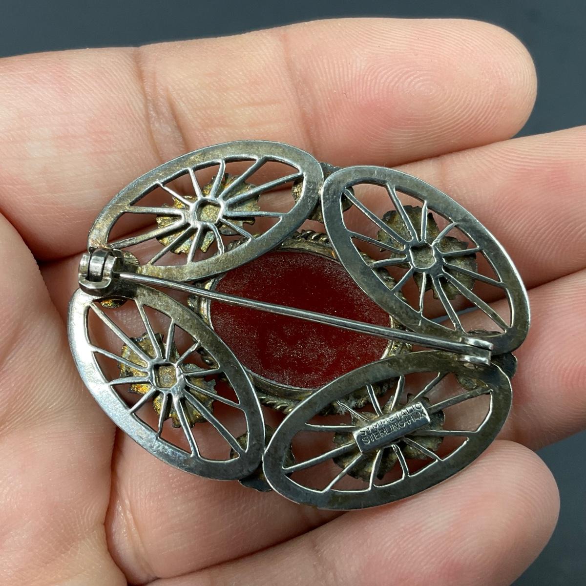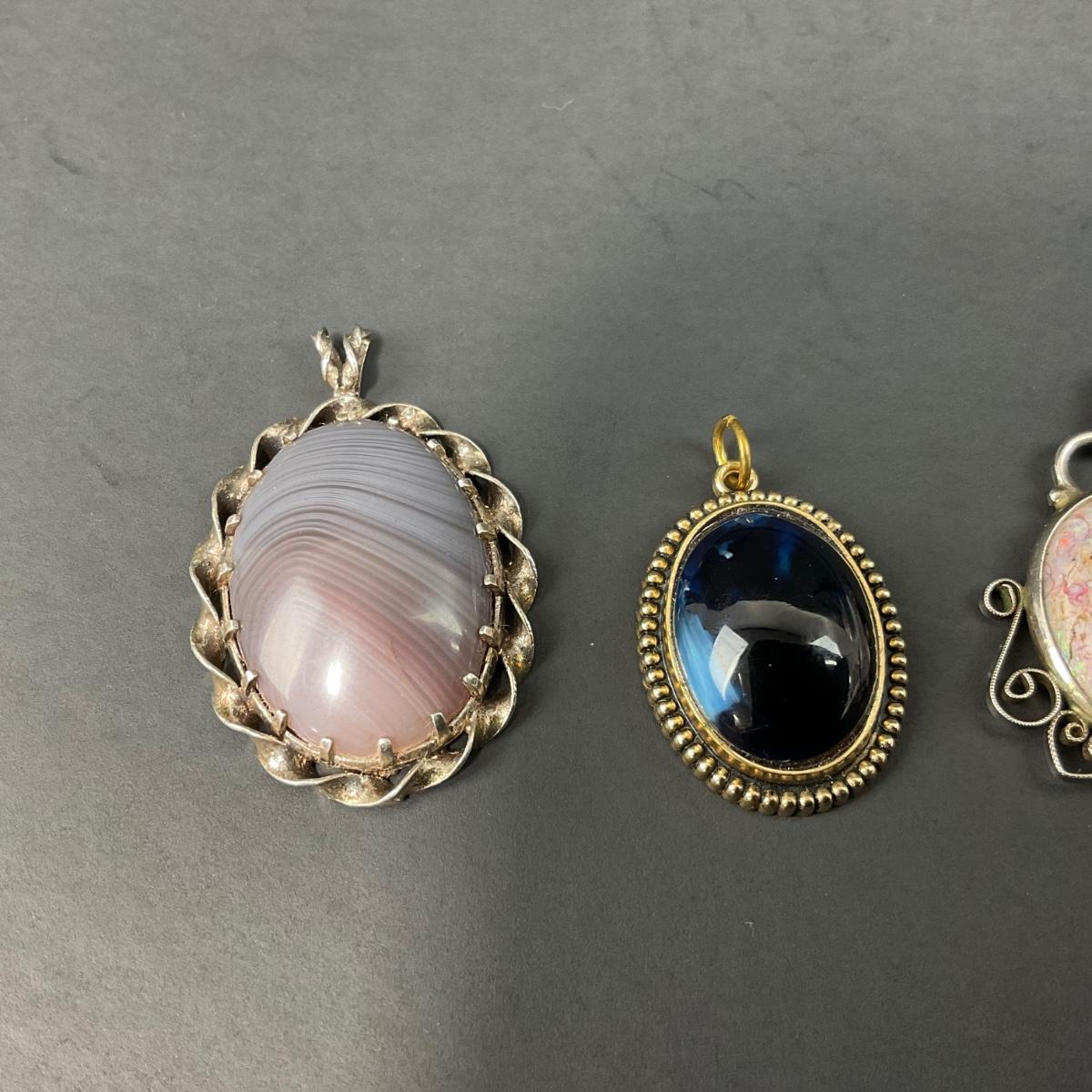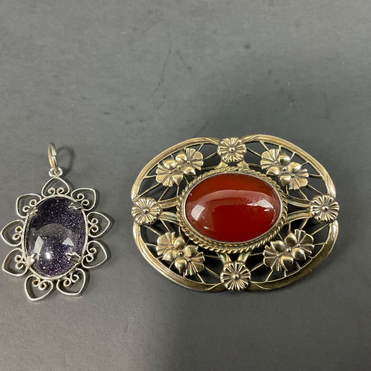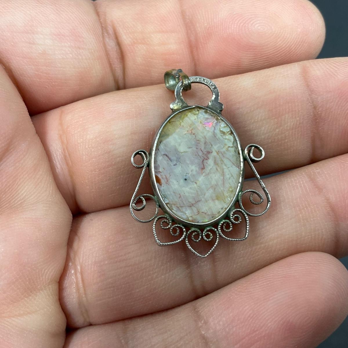 Lot of five pieces sterling pendants and brooch including one Carnelian sterling 14k brooch, one Agate pendant, one Goldstone (Blue in color) Pendant, one Opal pendant, and one Blue Stone pendant. This piece does have some scuffs, scratches, marks, or slight damage, but otherwise appears to be in great shape. Please see photos for details and condition. Any condition statement is given as a courtesy to a client, is an opinion, and should not be treated as a statement of fact. Reference to condition written, oral or within a condition report shall not be regarded as a full account of condition and may not include all defects, alterations, or restorations. Absence of a condition report does not imply a lot is flawless or lacking imperfections or damage. Katherine’s Auction & Appraisal Service shall have no responsibility for any error or omission. Returns shall not be accepted on the basis of condition. ::: Shipping is available on this lot. If you require shipping you must let us know at the close of the auction. We will coordinate with you after the item has been won. Shipping fees will include insurance up to or exceeding the value of all items being mailed. If you have any questions regarding this lot please contact the auctioneer either via this website, by direct email or by phone. PICK UP TIMES and other important information can be found in the TERMS and DESCRIPTION of the auction. Please take a look for pertinent information. Thanks!