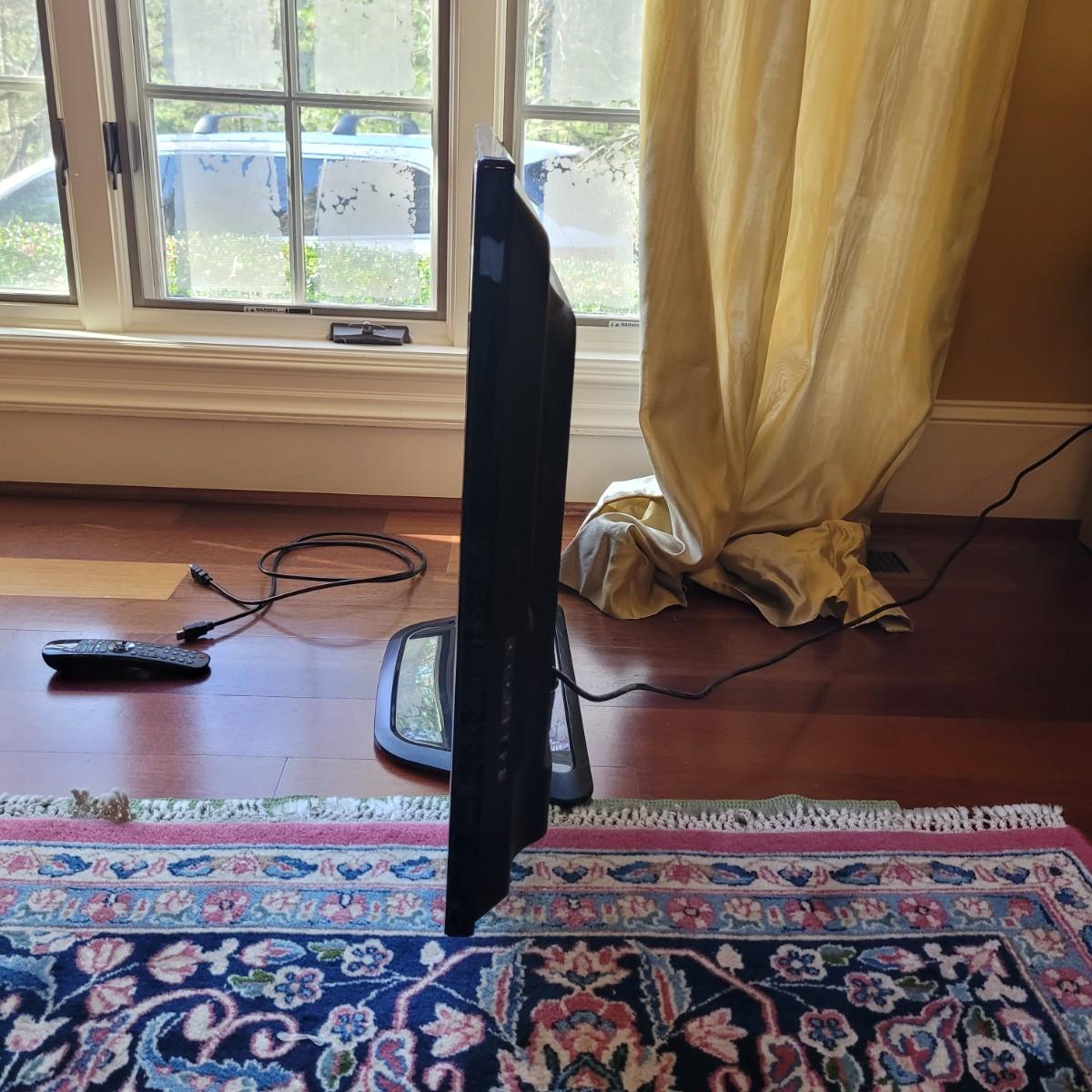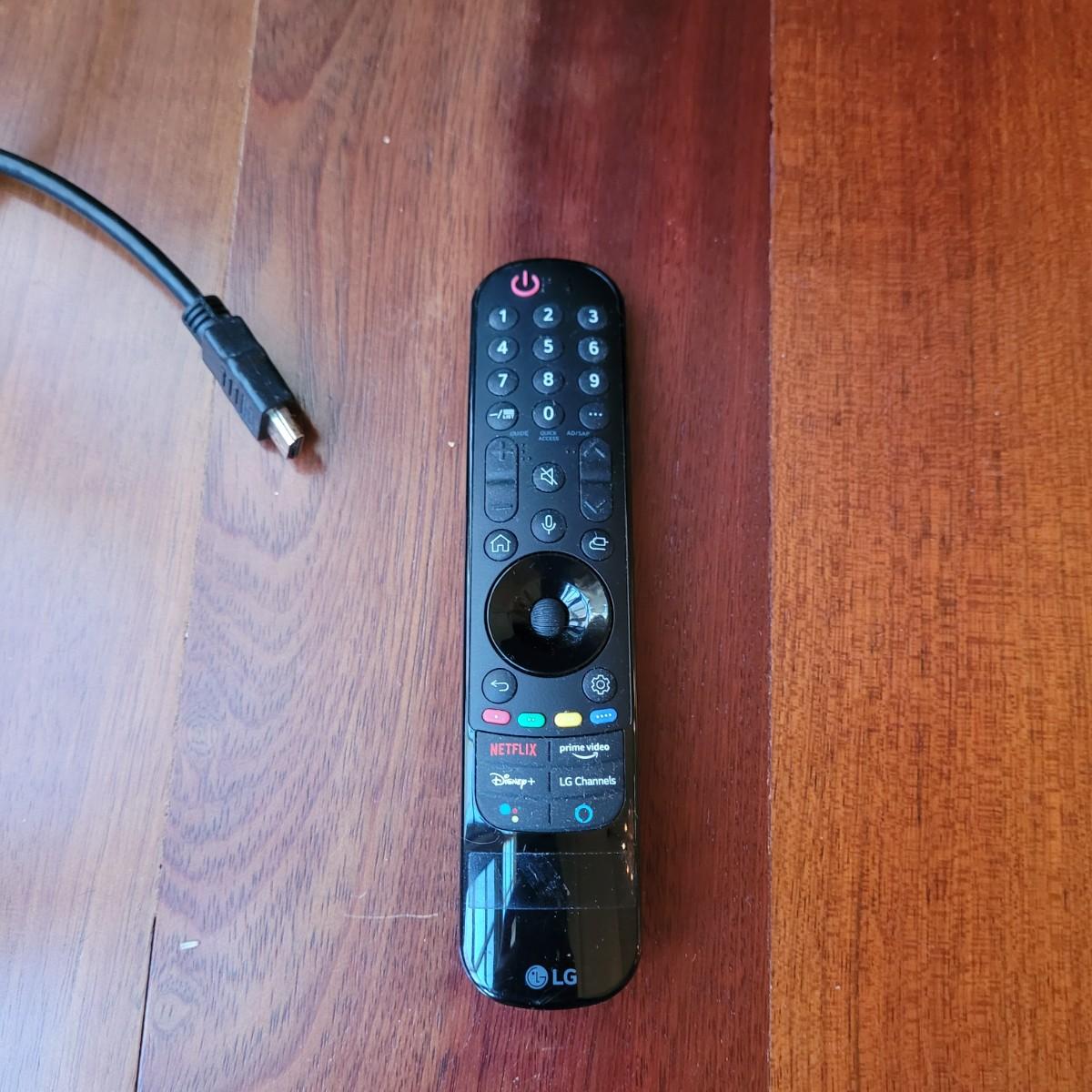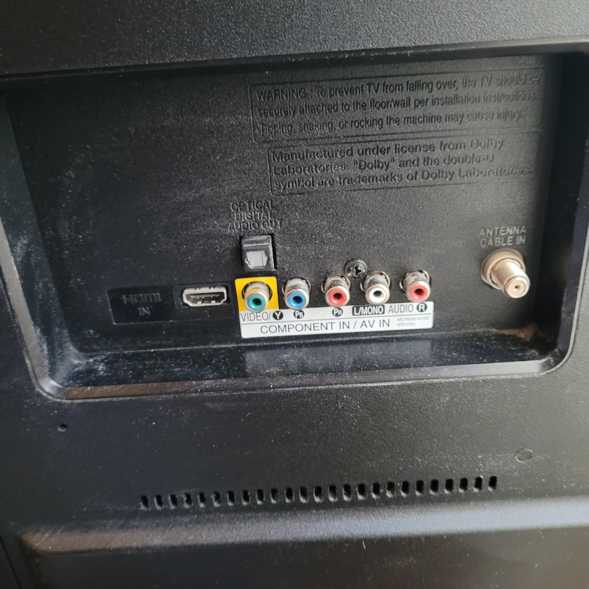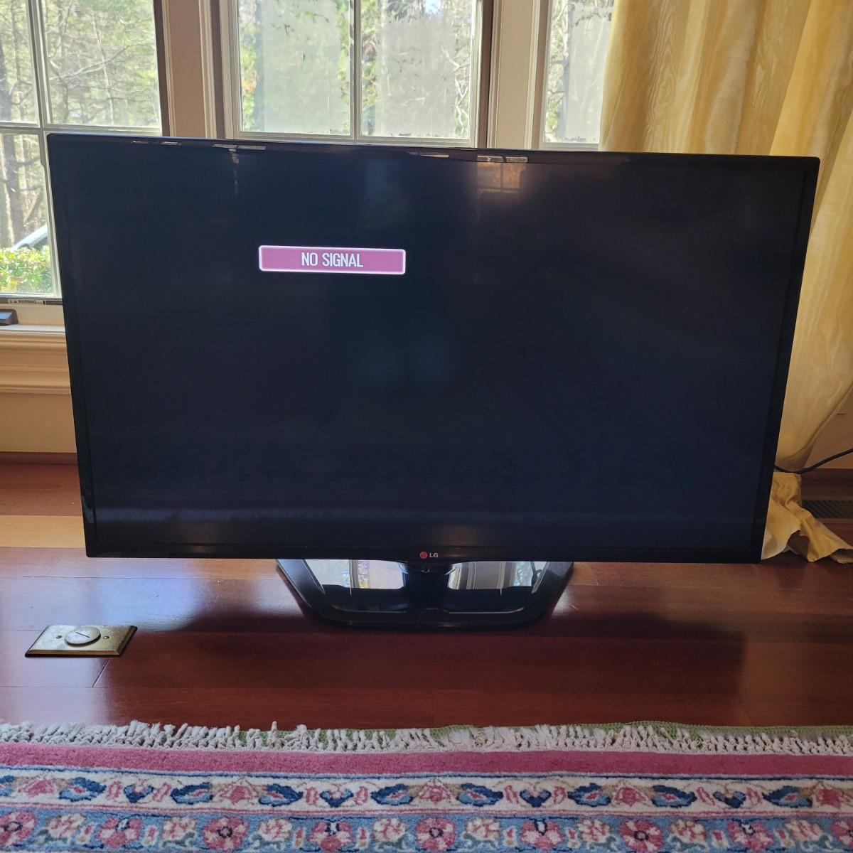 This 44" LG smart TV comes with a remote control and HDMI cable. Item powers on when plugged in. Local pickup only.
