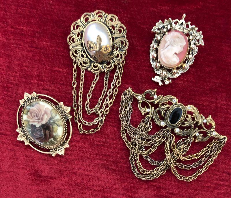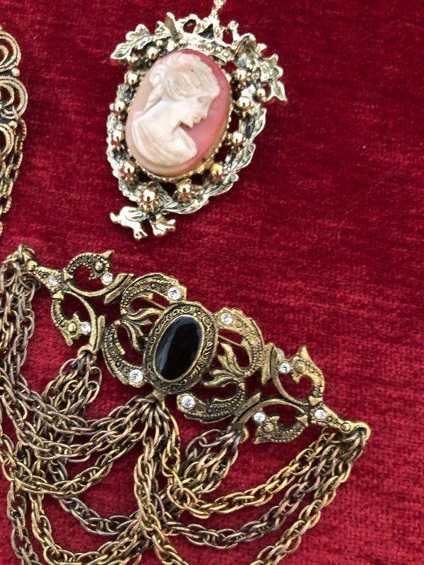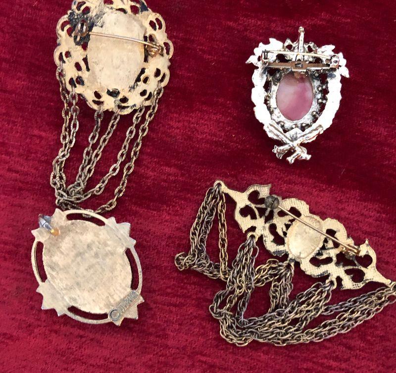 #44 Lot/ Pins pendants Cameo Vintage Costume Jewelry