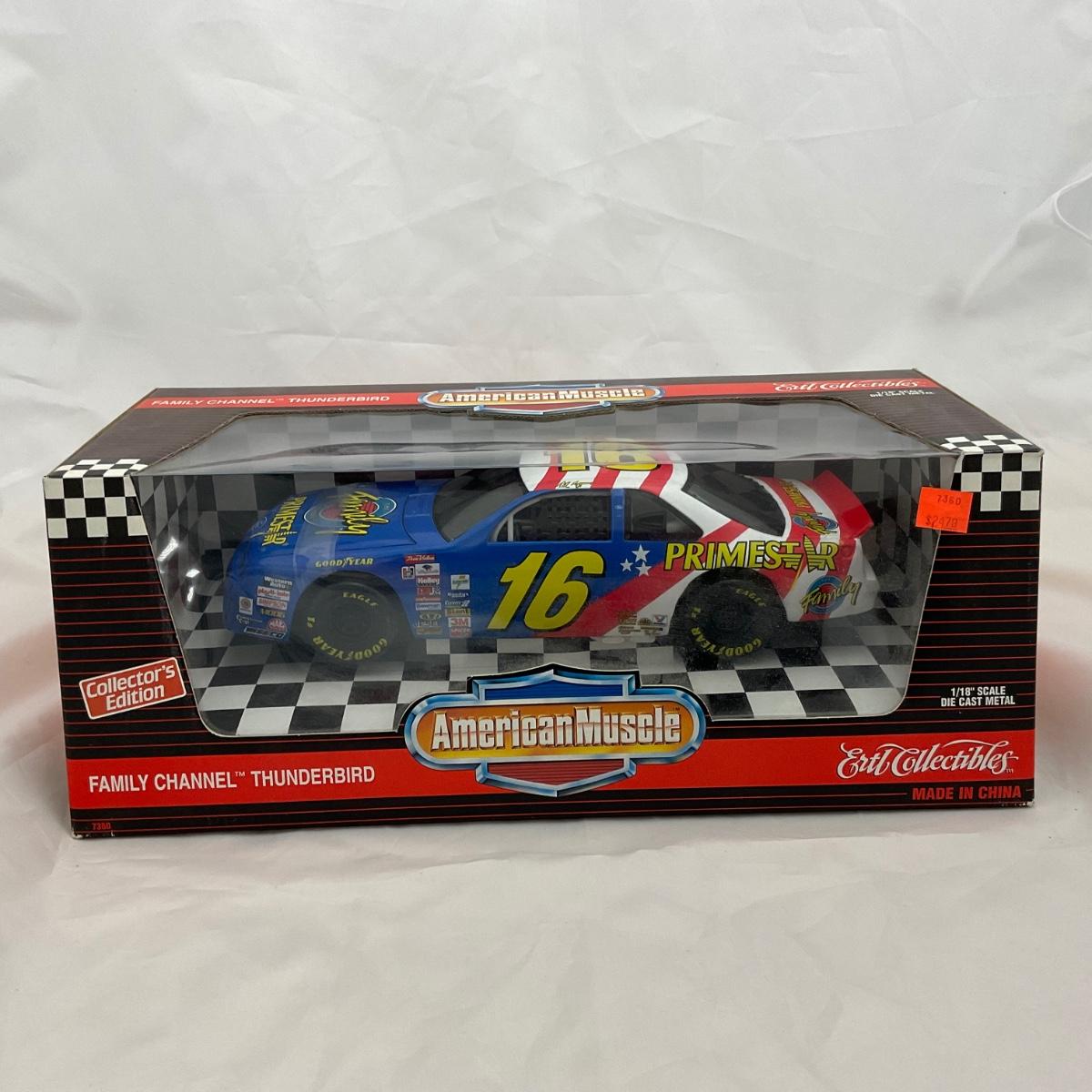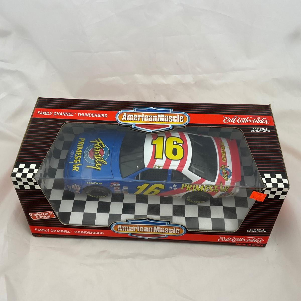 One NASCAR die cast 1:18 scale Family Channel Thunderbird Prix in box. Please see photos for details and condition. ::: Shipping is available on this lot. If you require shipping you must let us know at the close of the auction. We will coordinate with you after the item has been won. Shipping fees will include insurance up to or exceeding the value of all items being mailed. If you have any questions regarding this lot please contact the auctioneer either via this website, by direct email or by phone. PICK UP TIMES and other important information can be found in the TERMS and DESCRIPTION of the auction. Please take a look for pertinent information. Thanks!