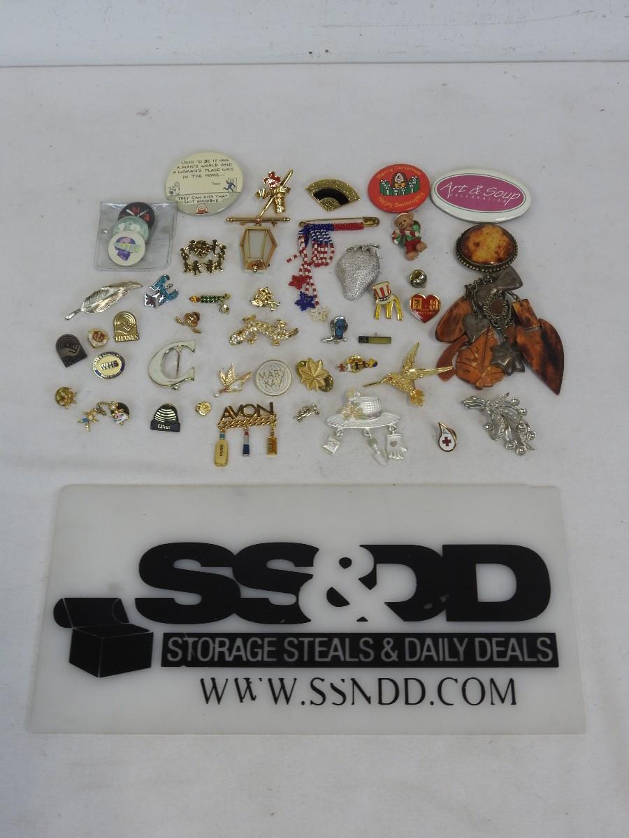44 Pins, Buttons, & Brooches. Nurse, Avon, Holidays, Beaded, Gardening, Utah, 7-Eleven