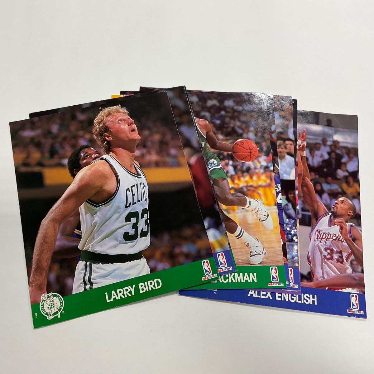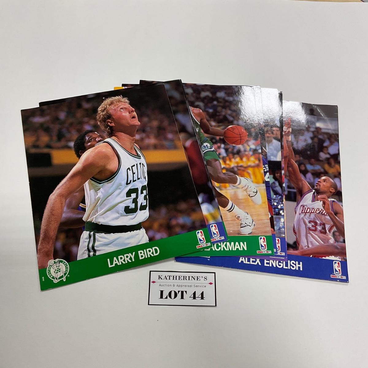 Eight NBA Hoops large 1990’s 8x10 picture cards. Please see photos for details and condition. ::: Shipping is available on this lot. If you require shipping you must let us know at the close of the auction. We will coordinate with you after the item has been won. Shipping fees will include insurance up to or exceeding the value of all items being mailed. If you have any questions regarding this lot please contact the auctioneer either via this website, by direct email or by phone. PICK UP TIMES and other important information can be found in the TERMS and DESCRIPTION of the auction. Please take a look for pertinent information. Thanks!