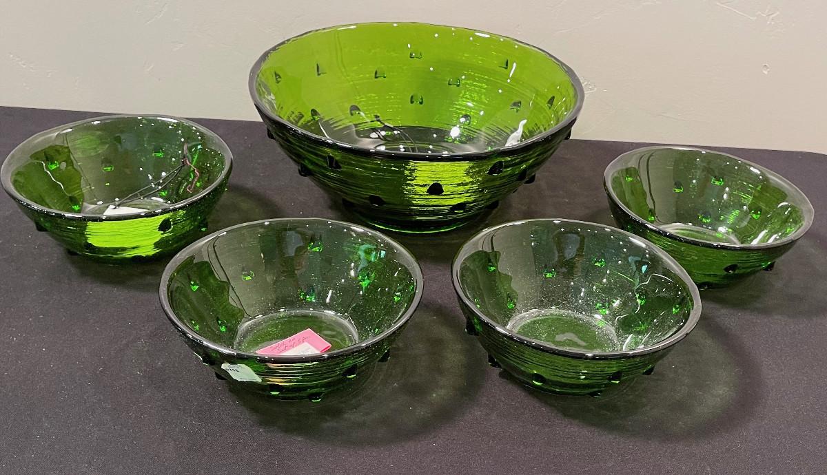#440 Blenko Handcraft Emerald Green 5 pc. Salad Set#2