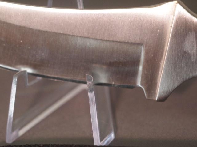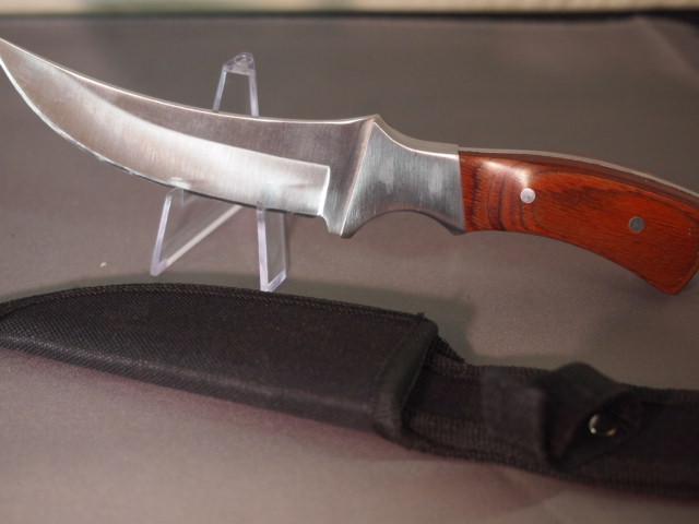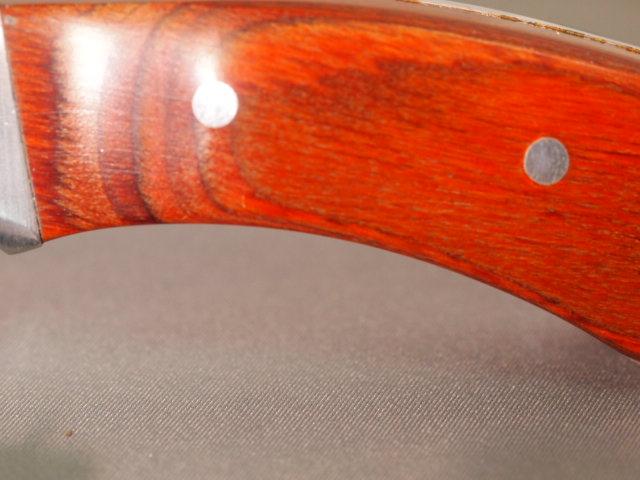 stainless steel about 8 and is 440 stainless steel with a very nice rose wood handle full tang and sheath