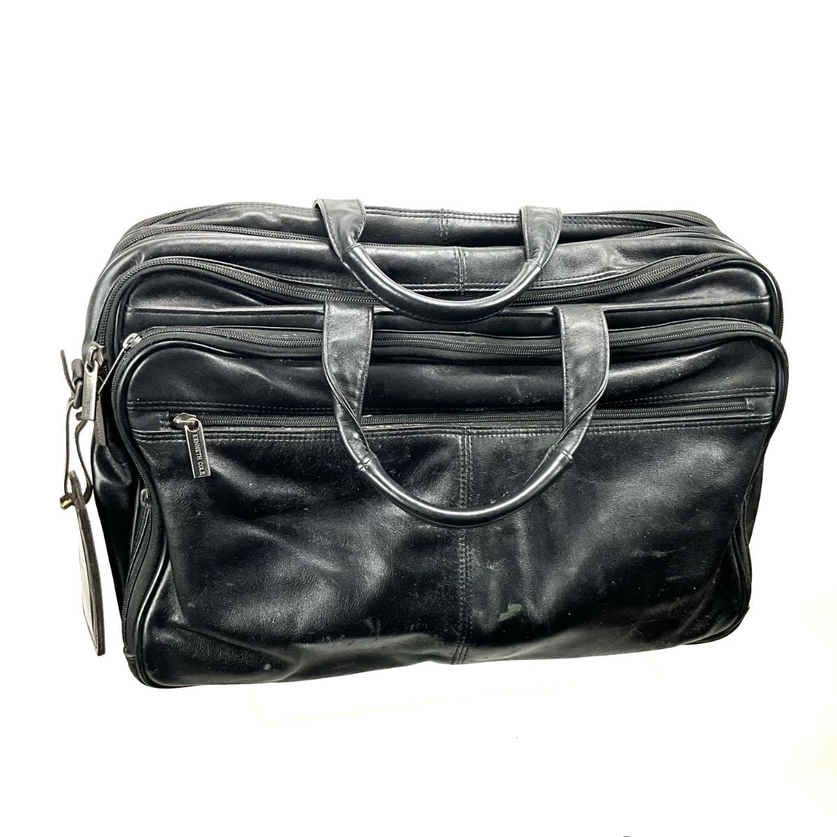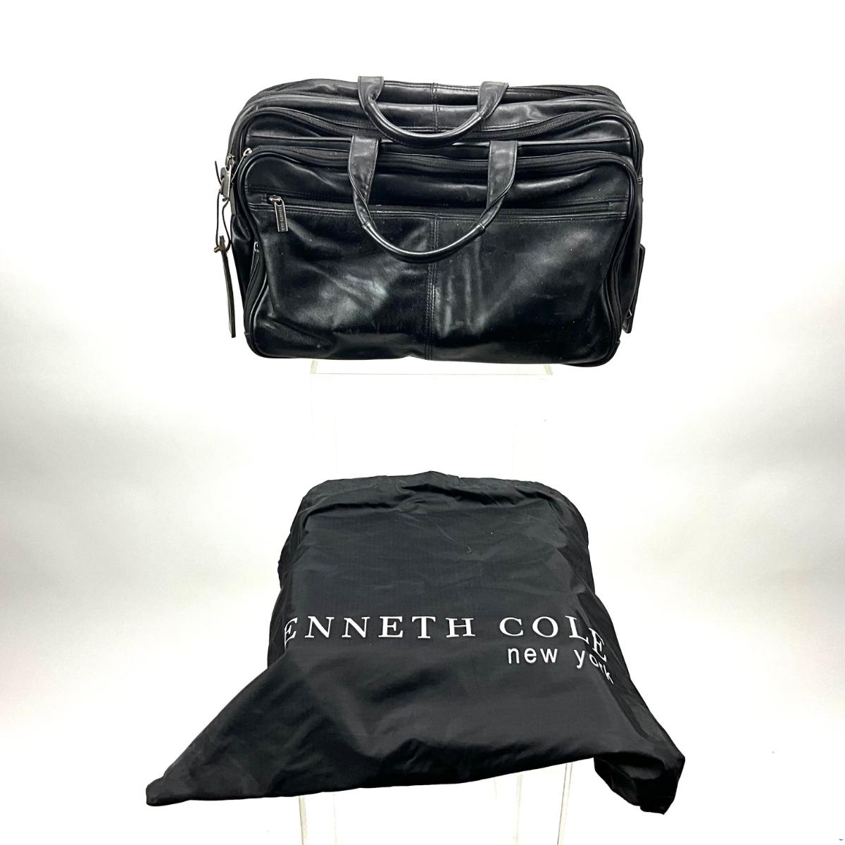 441 Kenneth Cole Black Leather Briefcase/Laptop Bag with Dust Cover and Strap