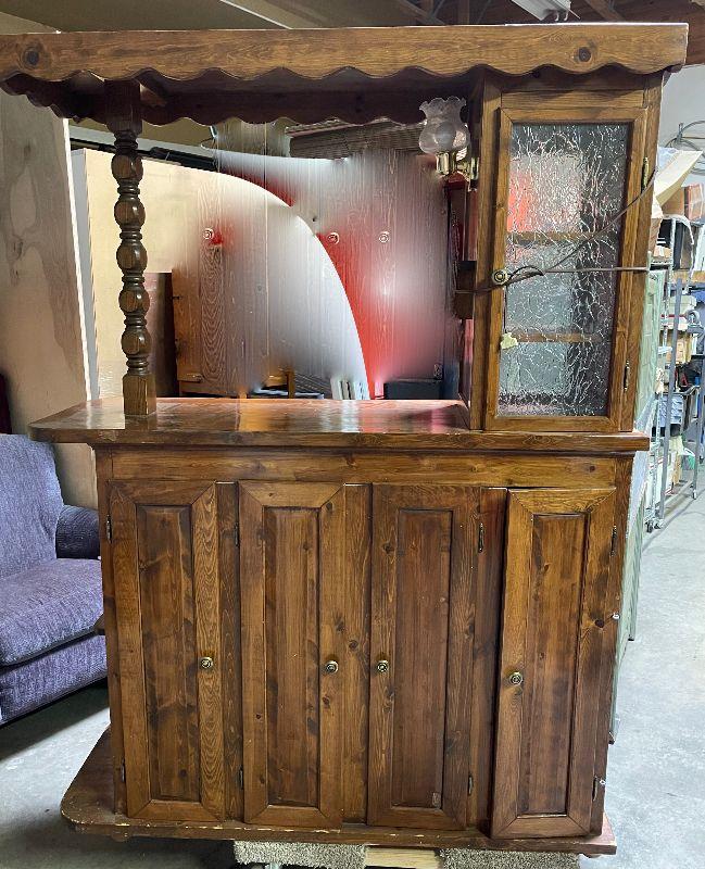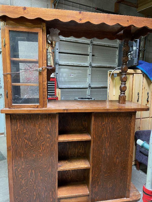 Vintage 70's Homemade. Groovy: 55" Long 19" Wide and 72" Tall Bara is 40" Tall Rustic Solid Pine.