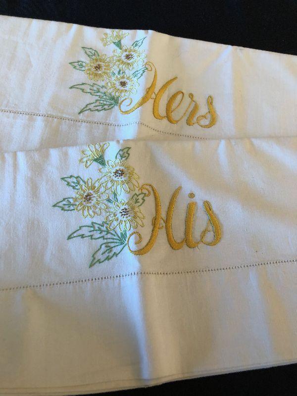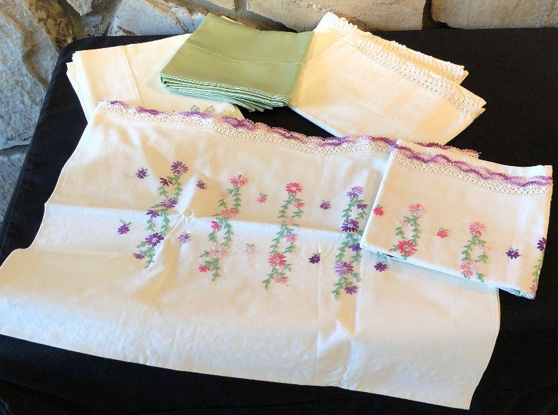 #443 4 Pillow Cases 2 Embroider, 1 satin and 1 lace edge cotton