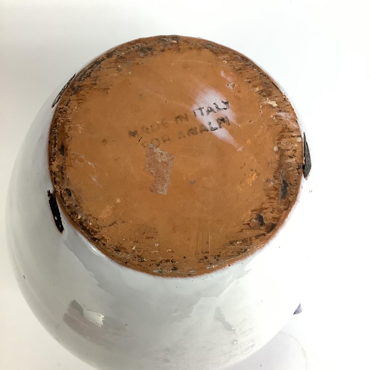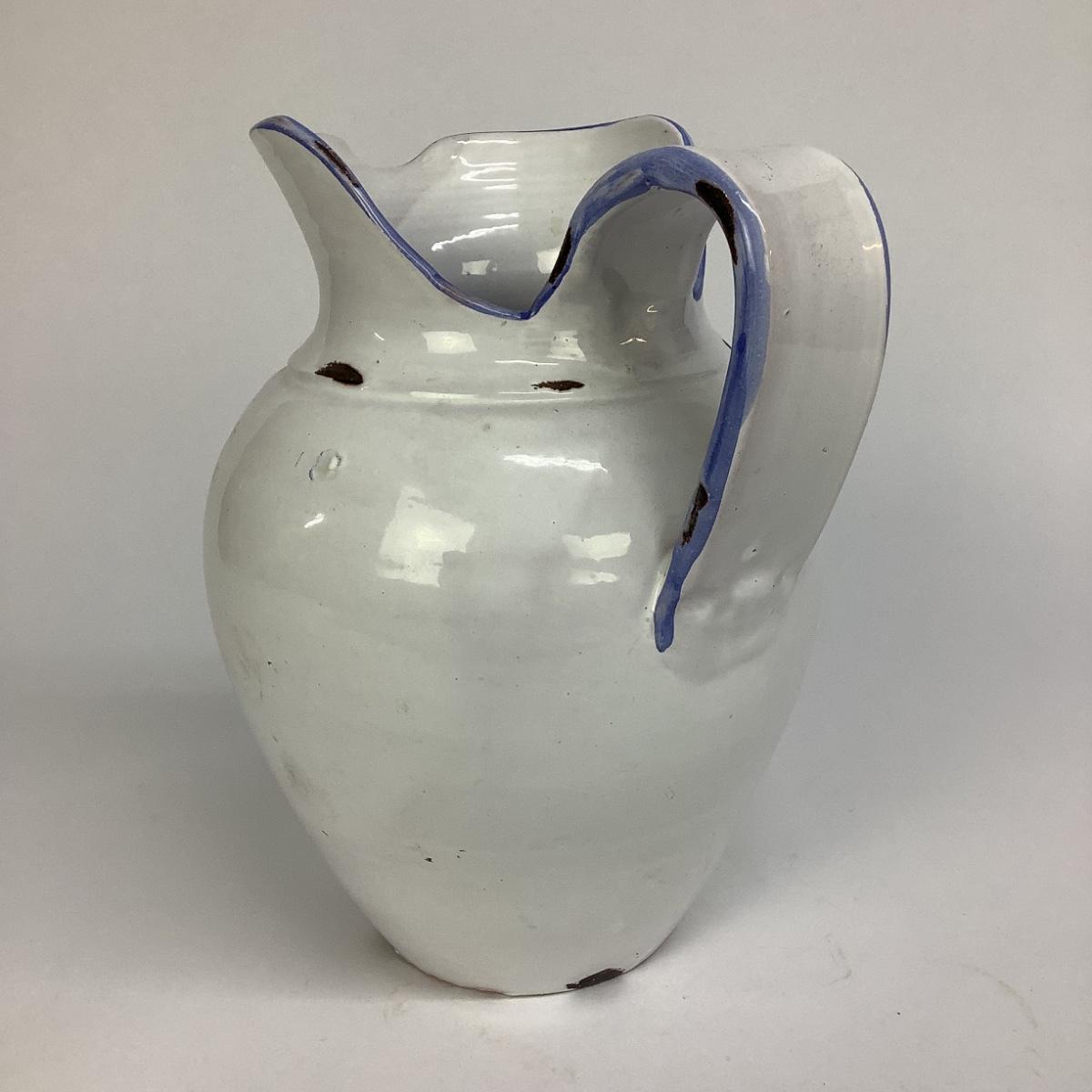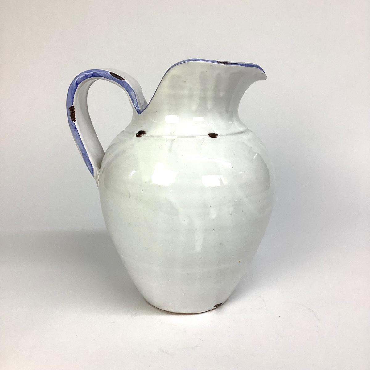 443 Vintage Italian Terracotta Pitcher Glazed White/Blue