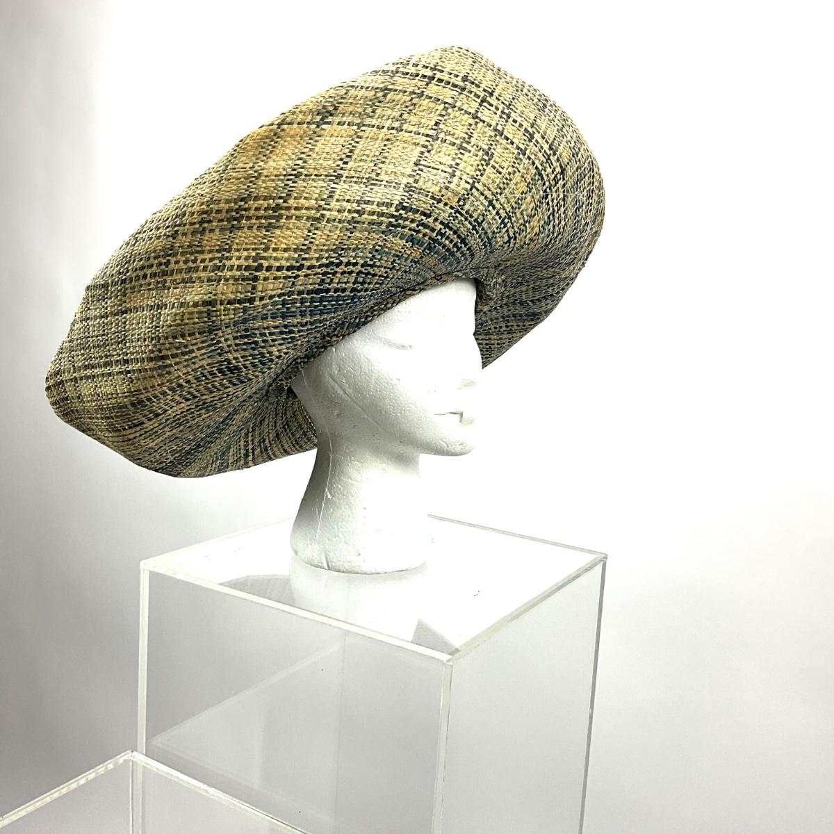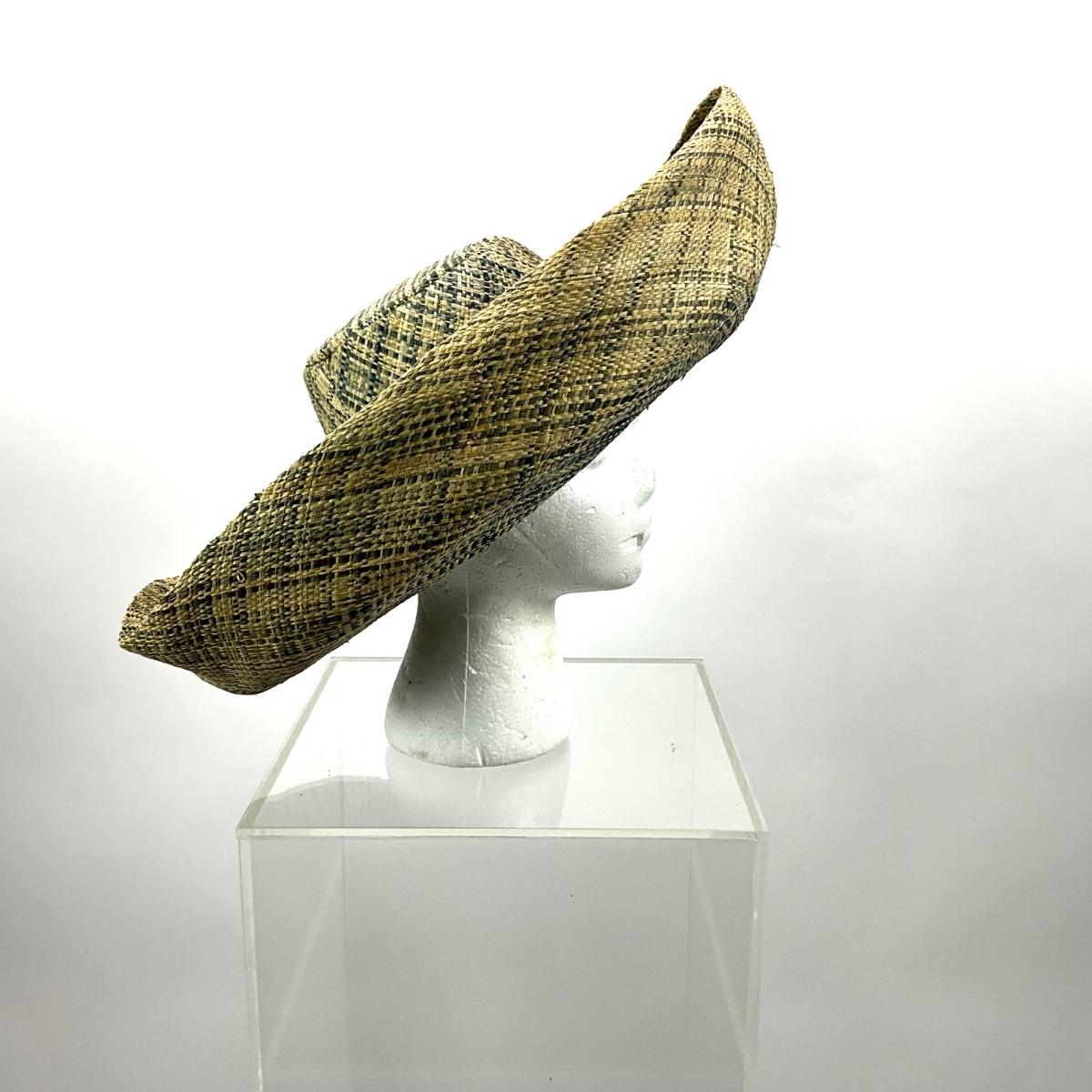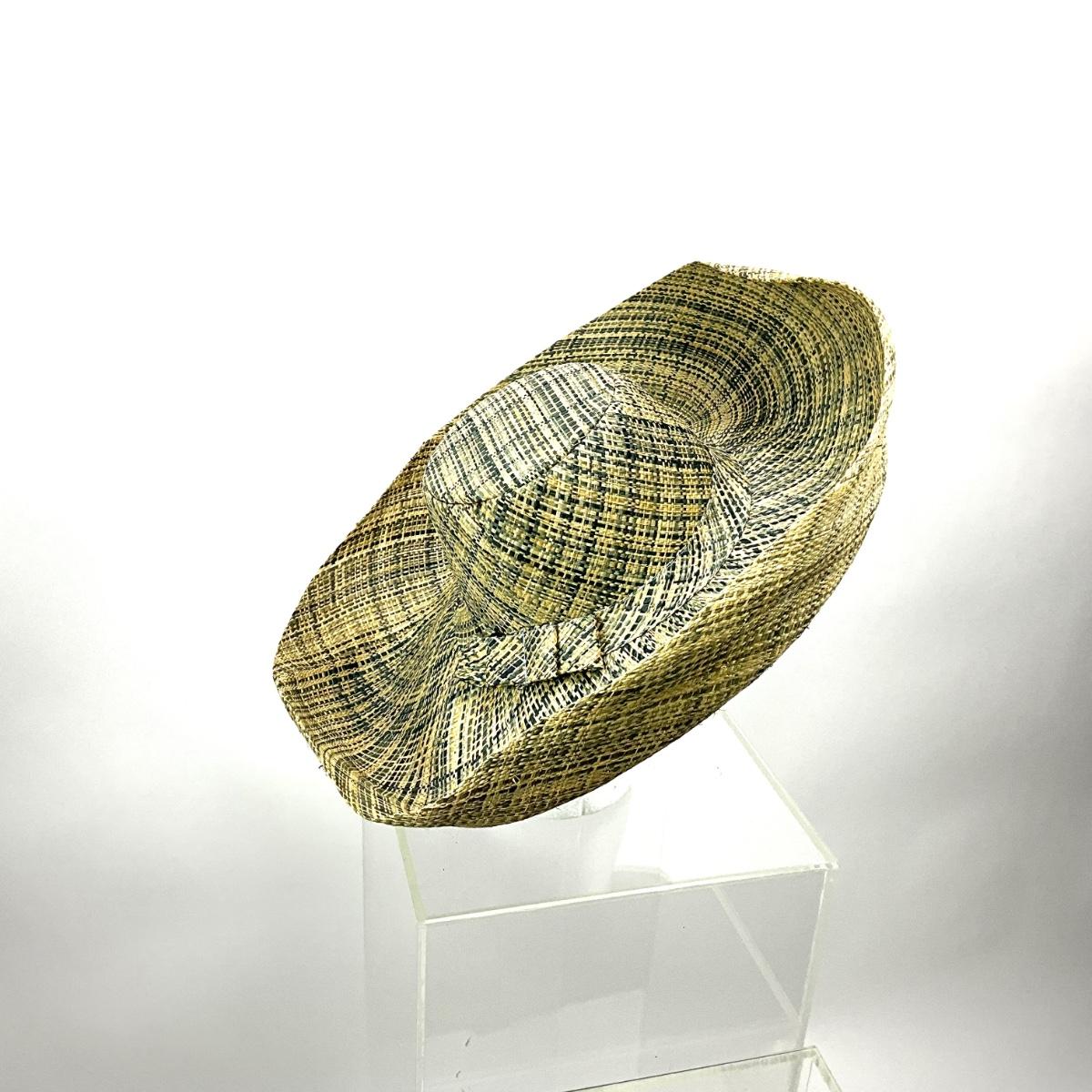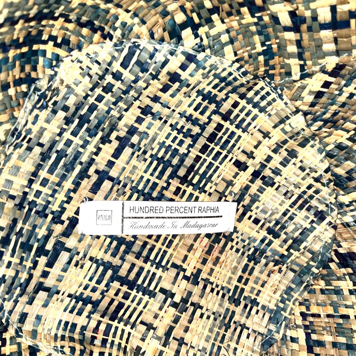 444 ONIGO Raphia Hat Blue and Tan Weave Made In Madagascar