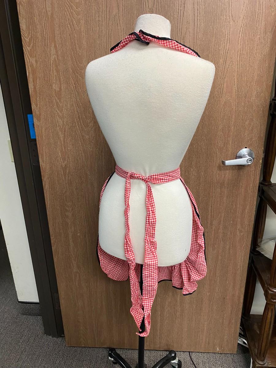 Red and White Gingham Checkered Vintage Full Apron Tie Waist