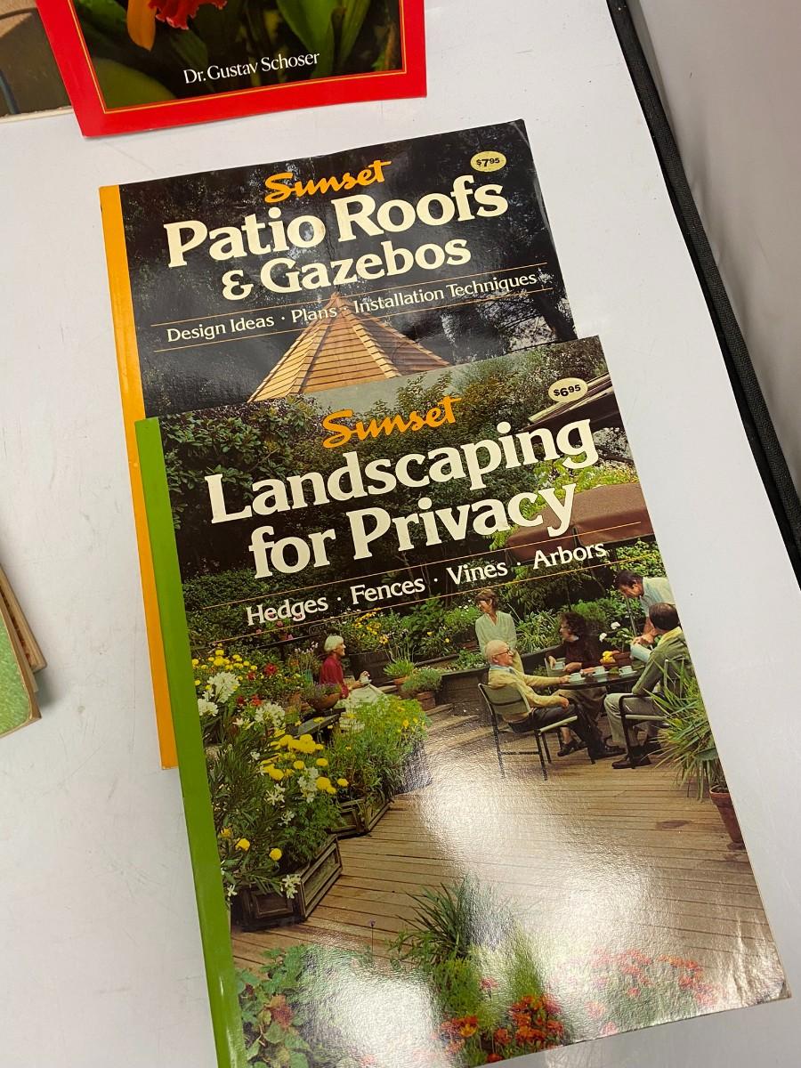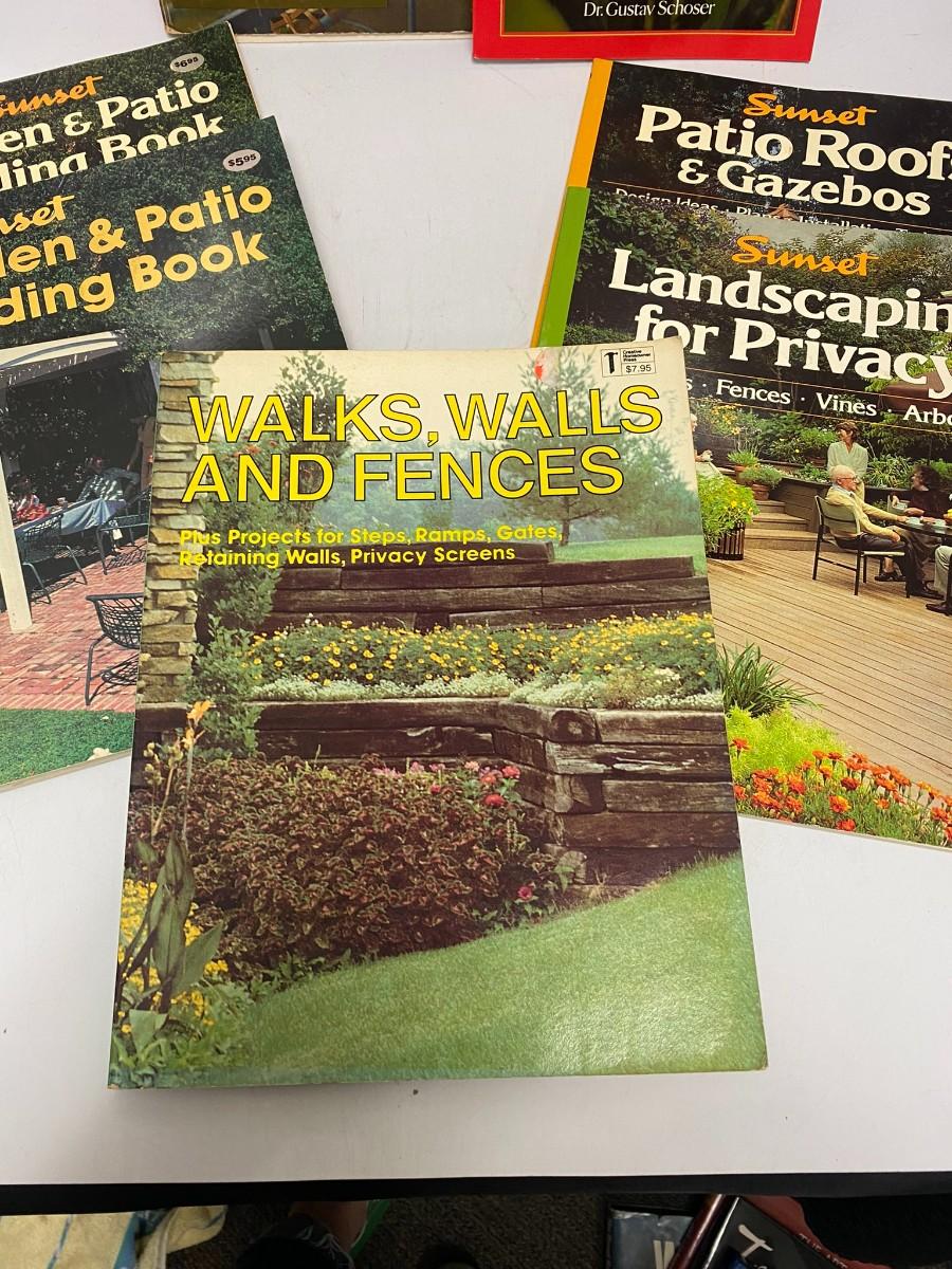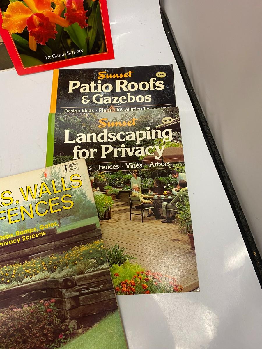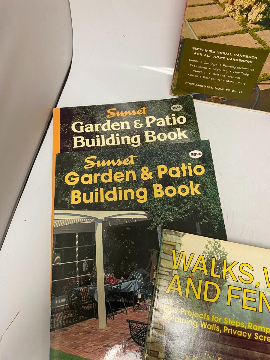 7 Book Lot about Gardening Patio Building Landscaping & More. Two seem to be the same but one is a newer version, might have more in it. Good condition.