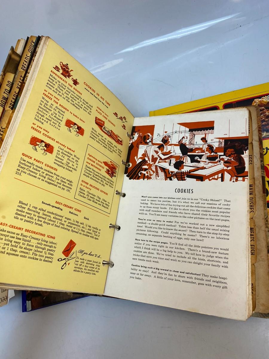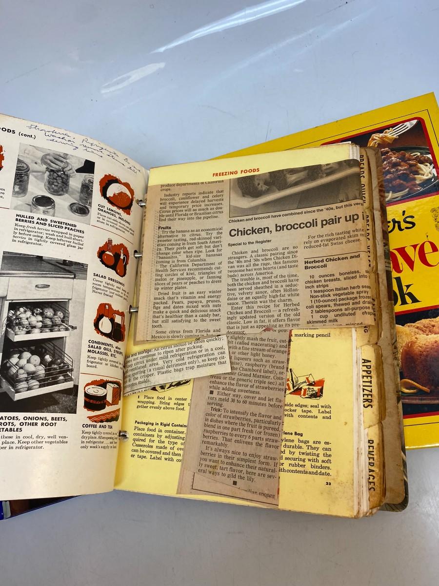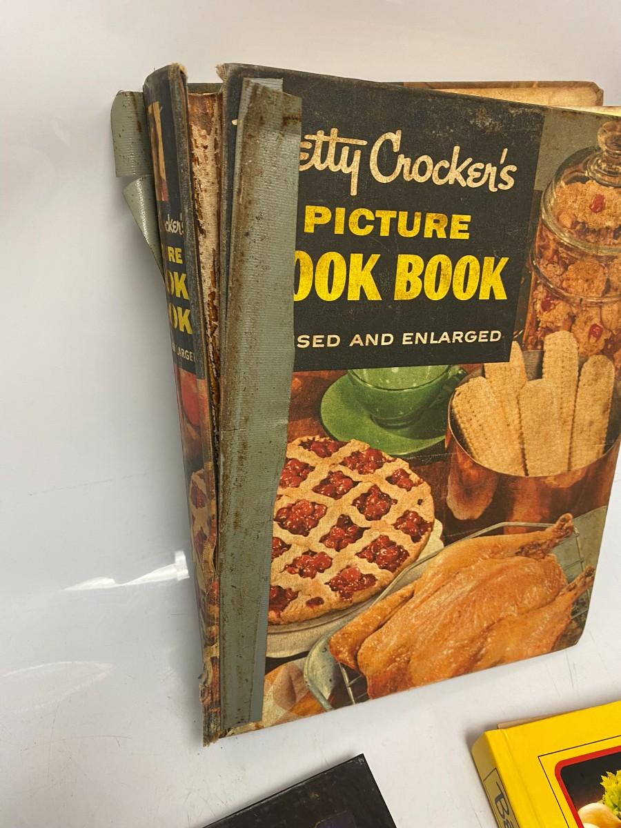 Set of 3 Betty Crocker Cookbooks Picture Cook Book Chinese Food Microwave. The Picture Cook Book is well used, the cover is falling apart but it also contains some additions of the previous owners favorite recipes.