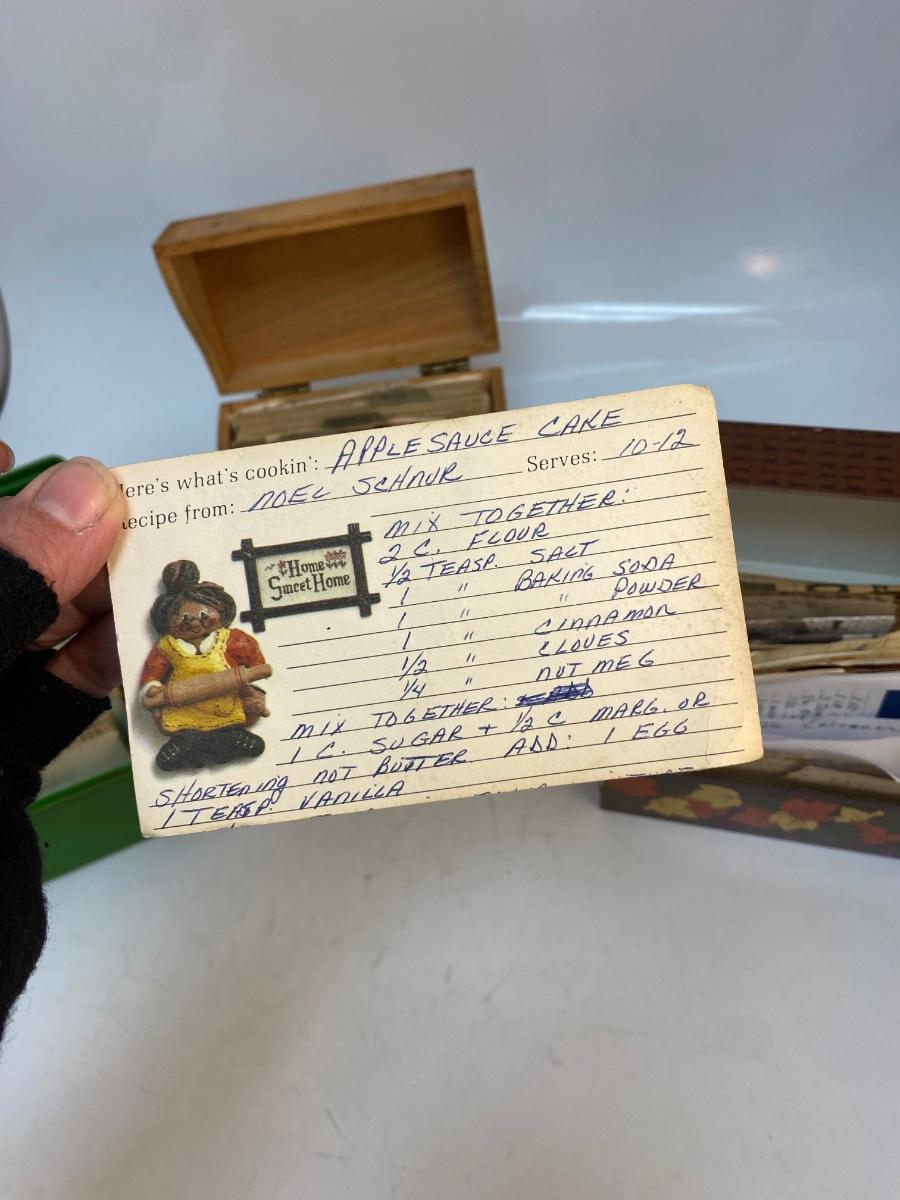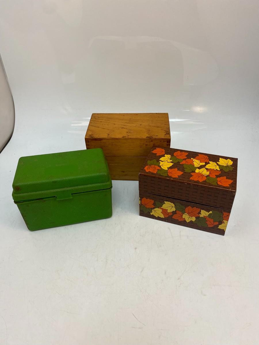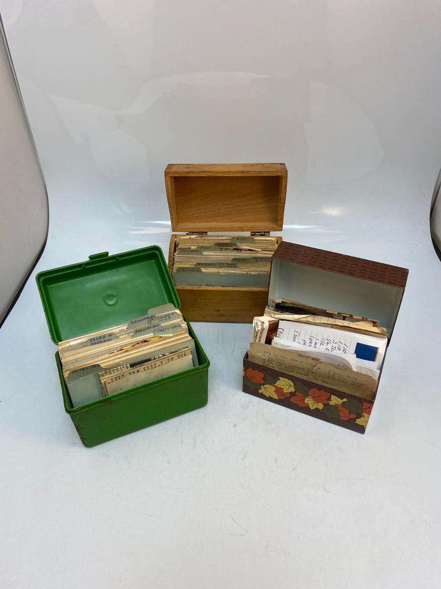 Set of 3 Vintage Recipe Boxes Filled with Handwritten Cut Out Family Favorite Recipes