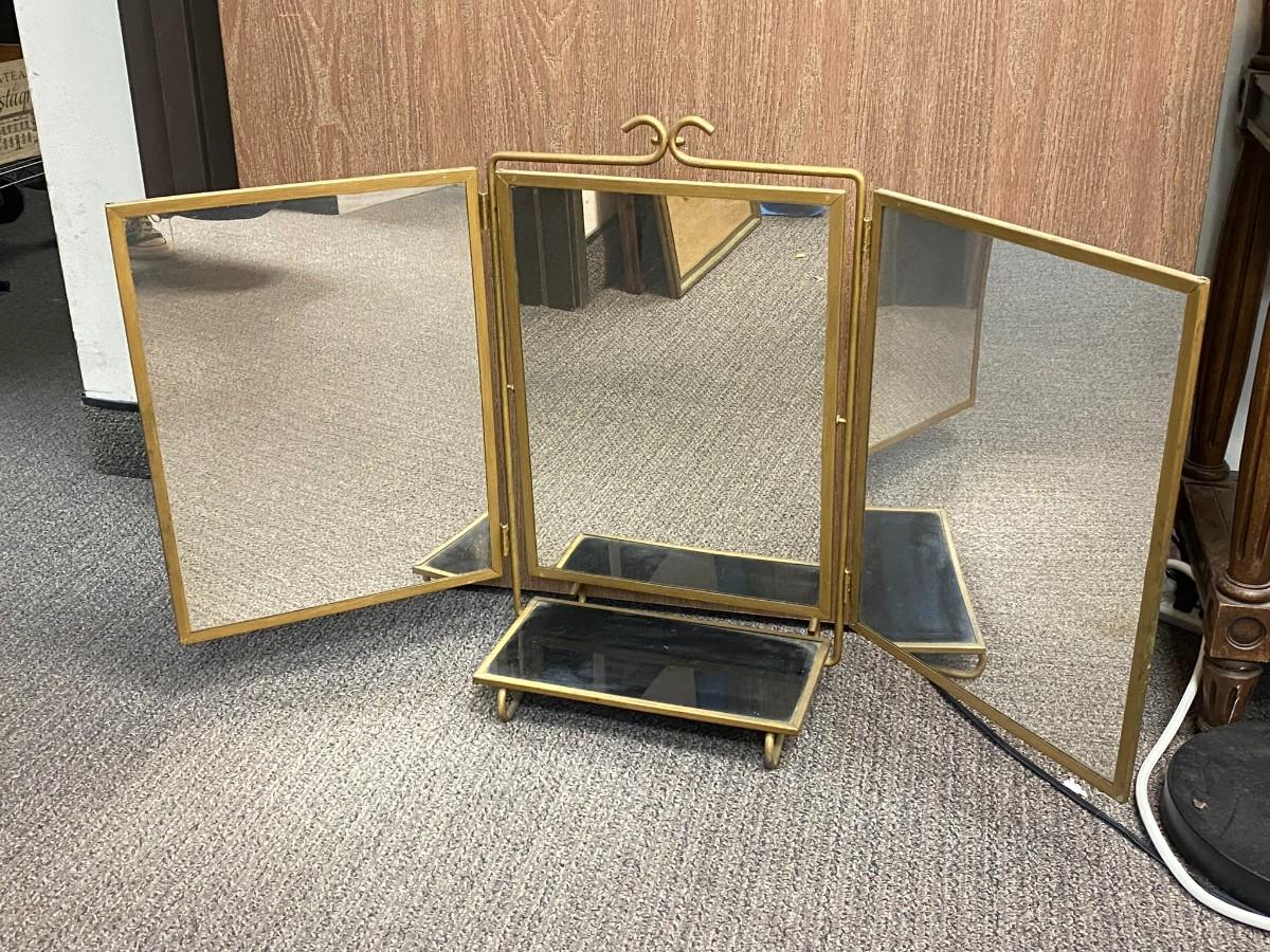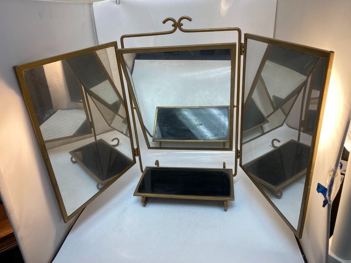 Vintage Hollywood Regency Glam Tri Fold Vanity Makeup Table Mirror Adjustable