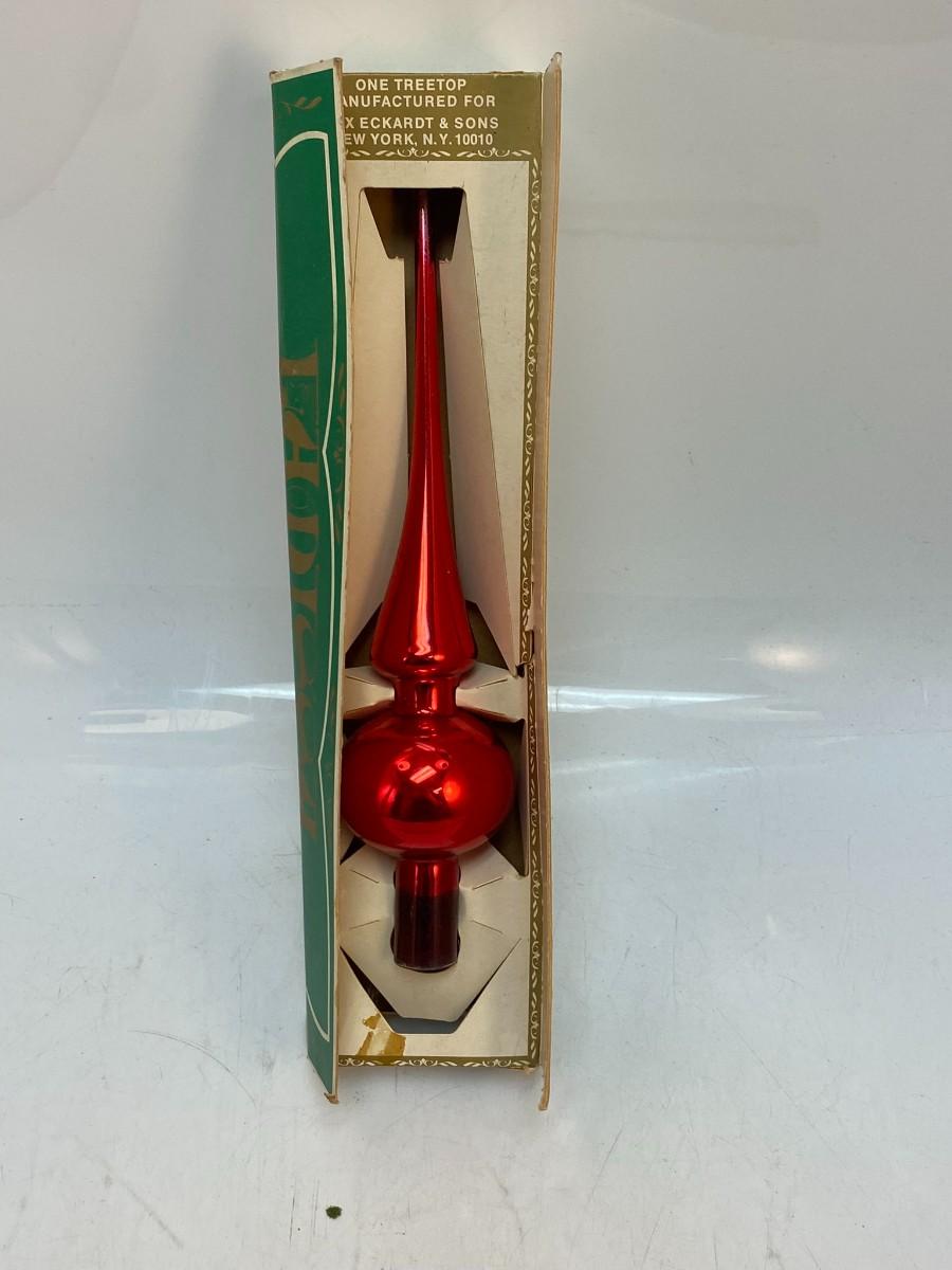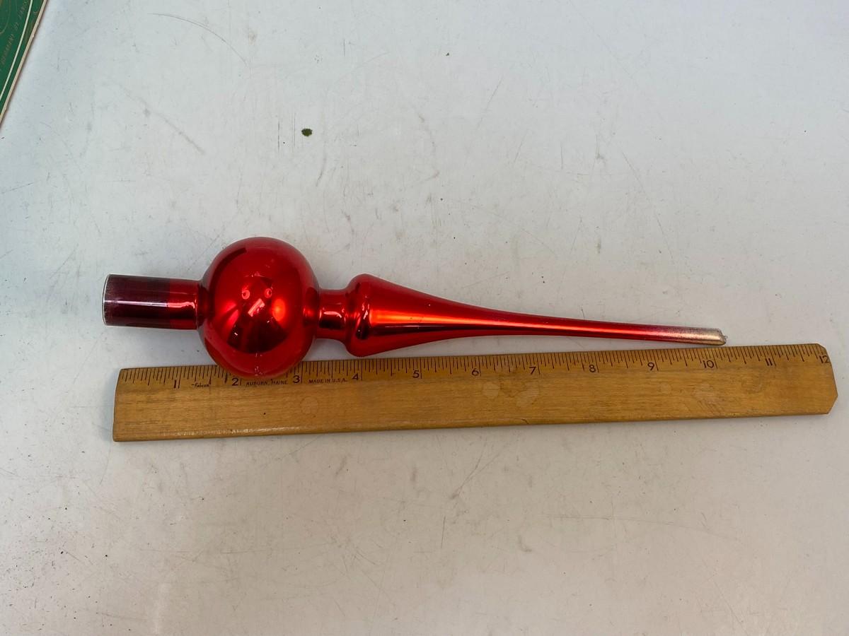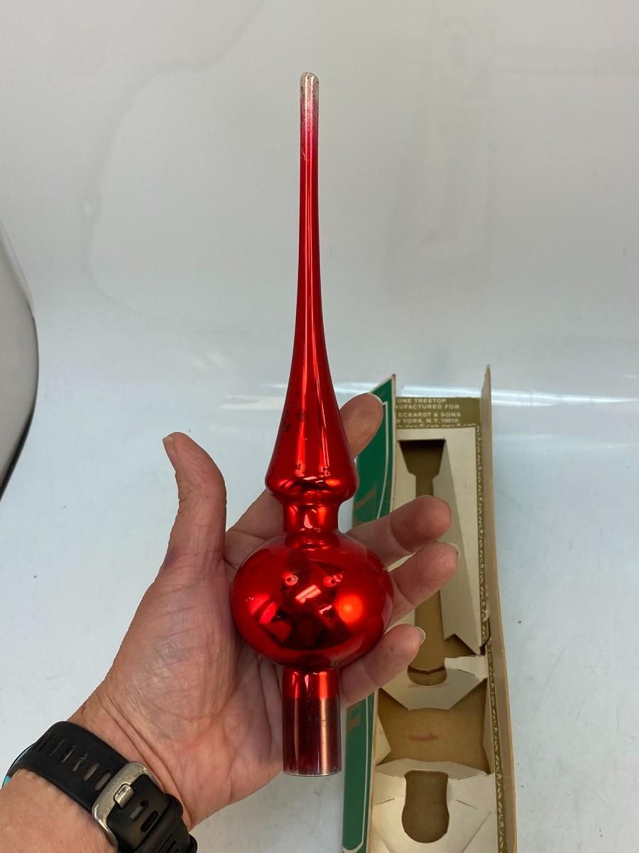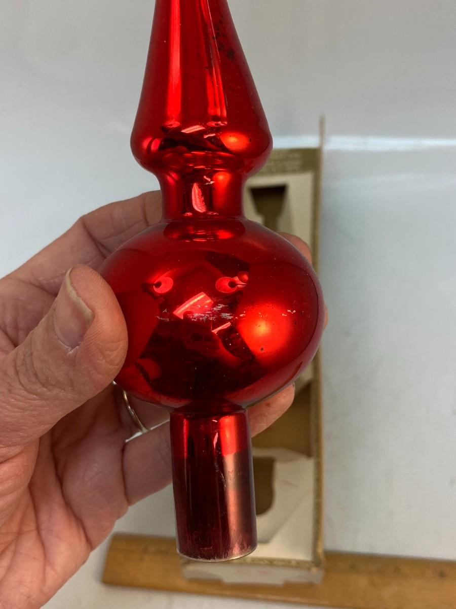 Vintage Lanissa Red Blown Mercury Glass Christmas Tree Spire Topper with Box West Germany