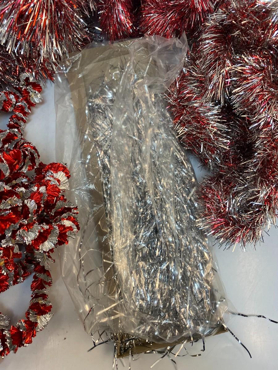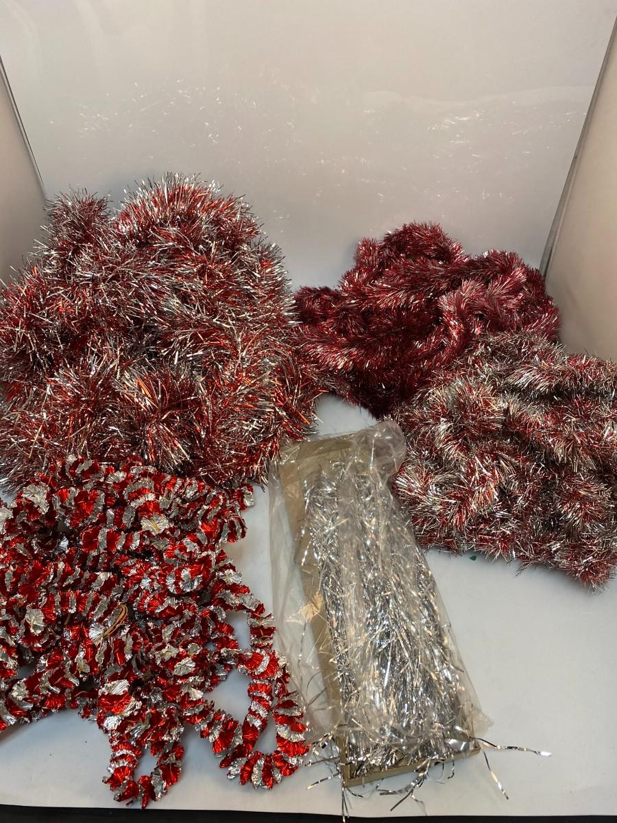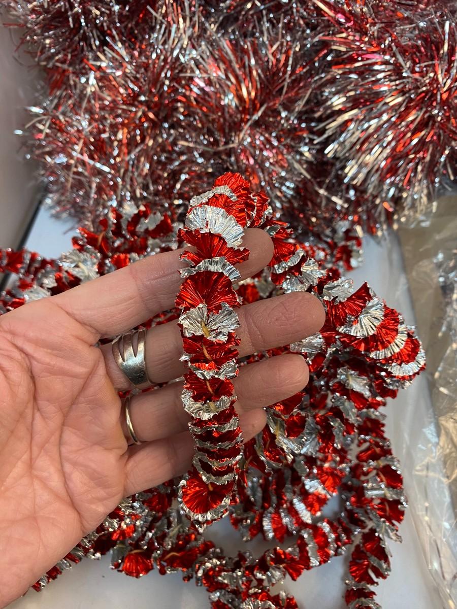 Vintage Lot of Red & Silver Metallic Foil Tinsel Christmas Tree Holiday Garland. Different variations.