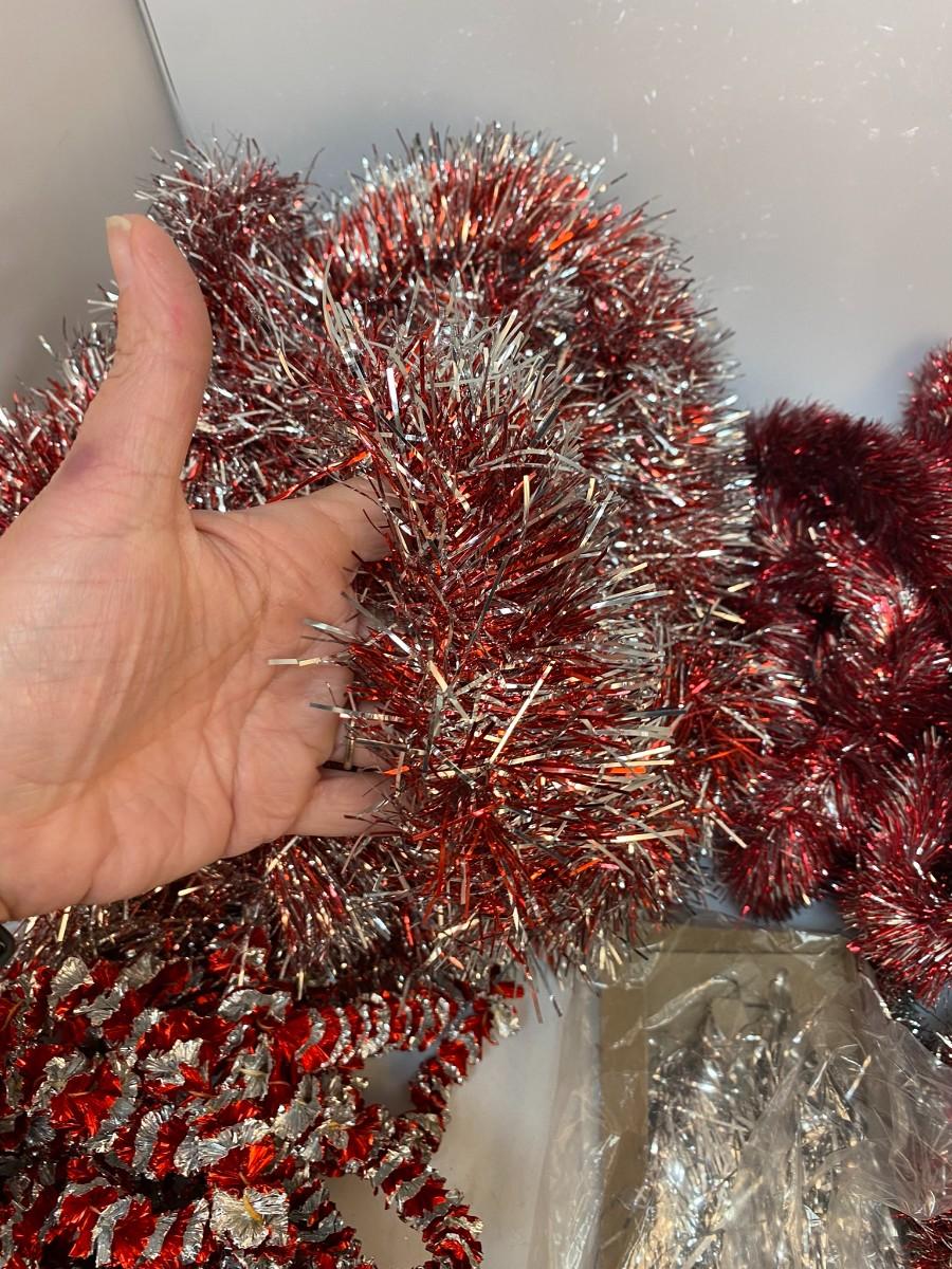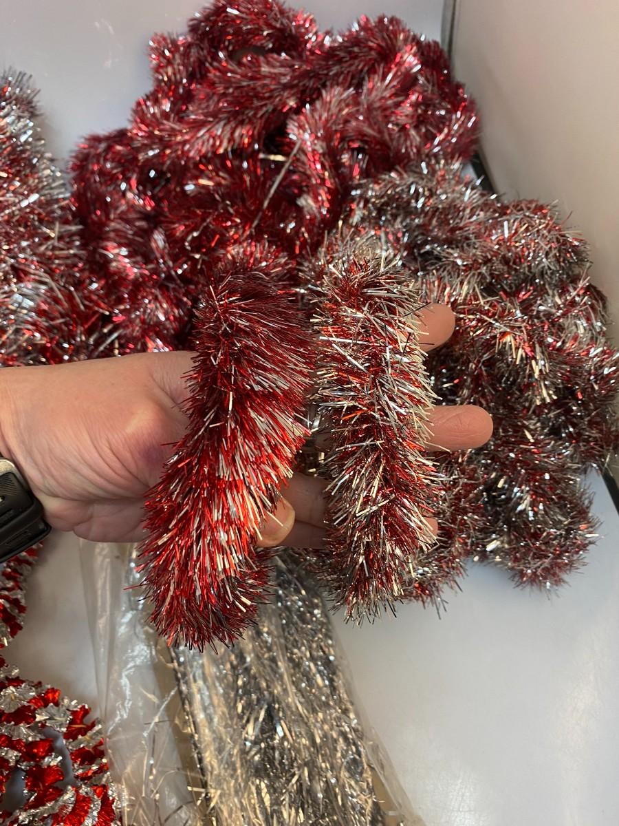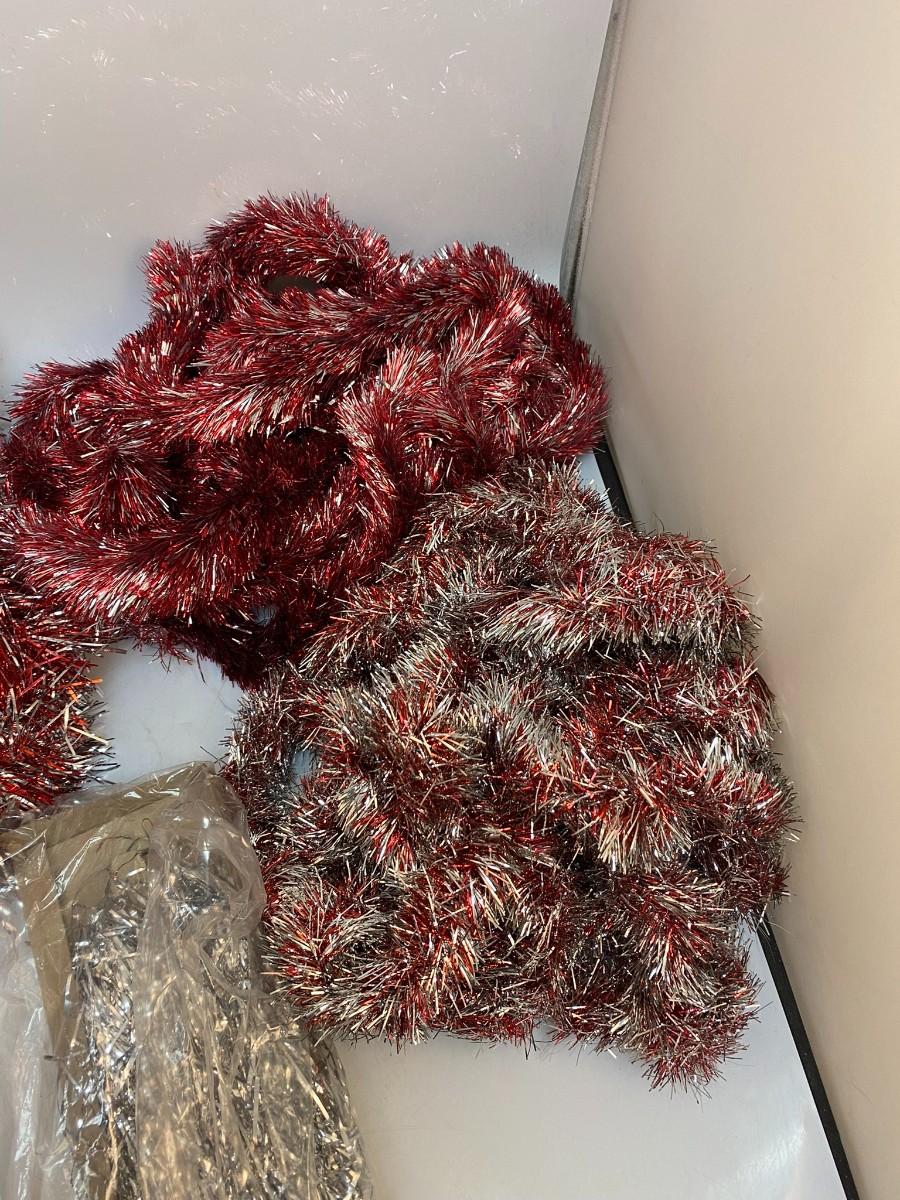 Vintage Lot of Red & Silver Metallic Foil Tinsel Christmas Tree Holiday Garland. Different variations.