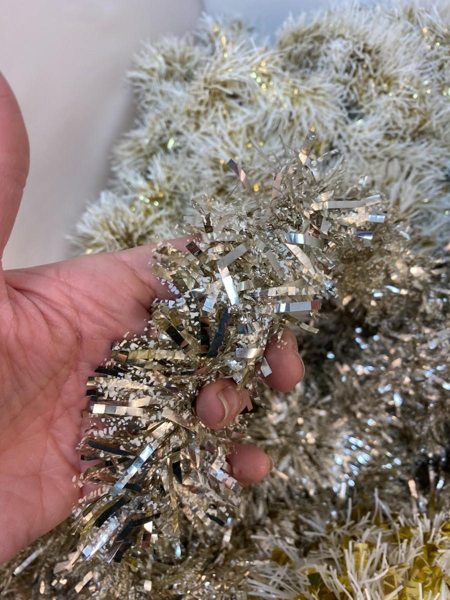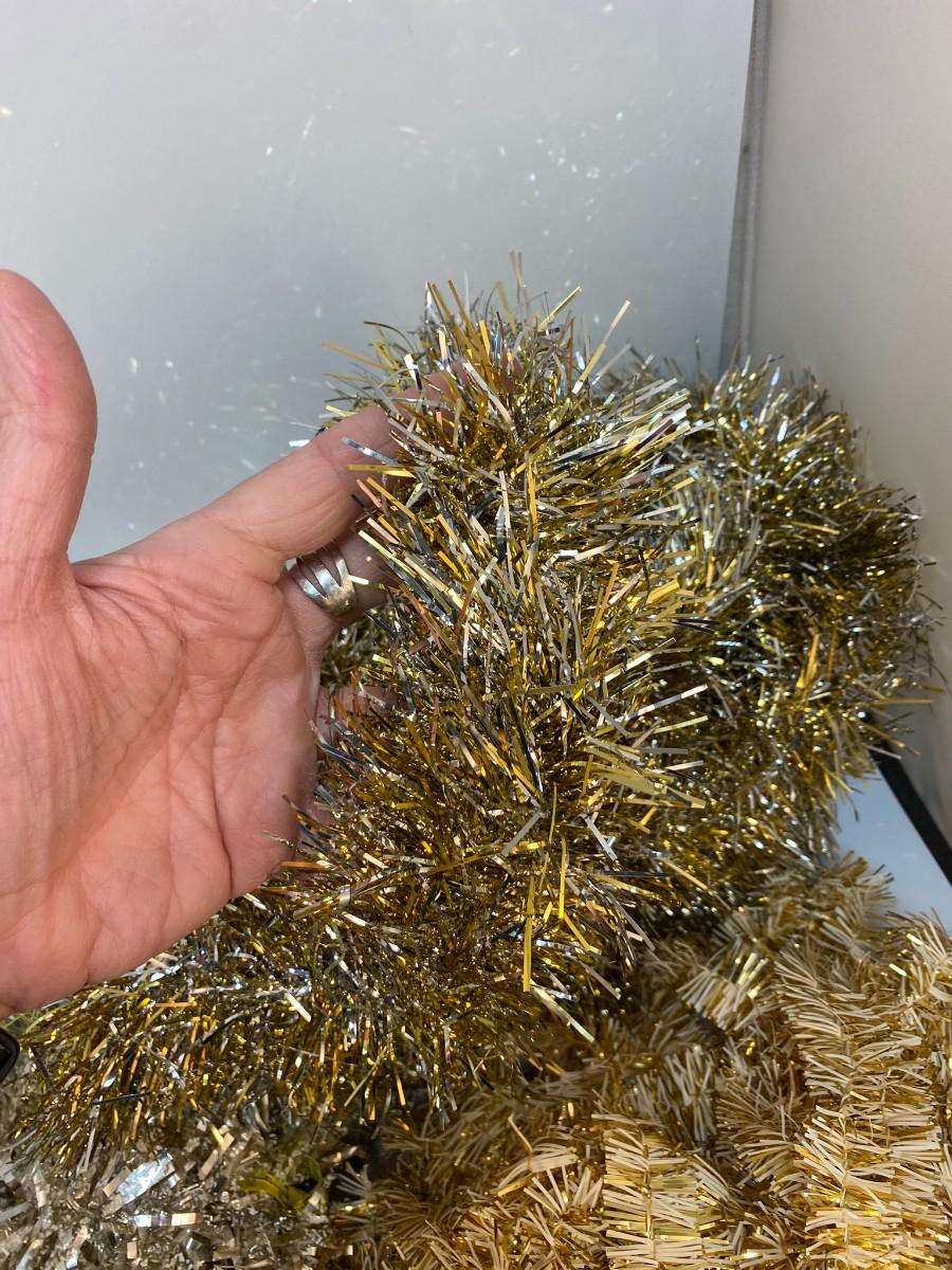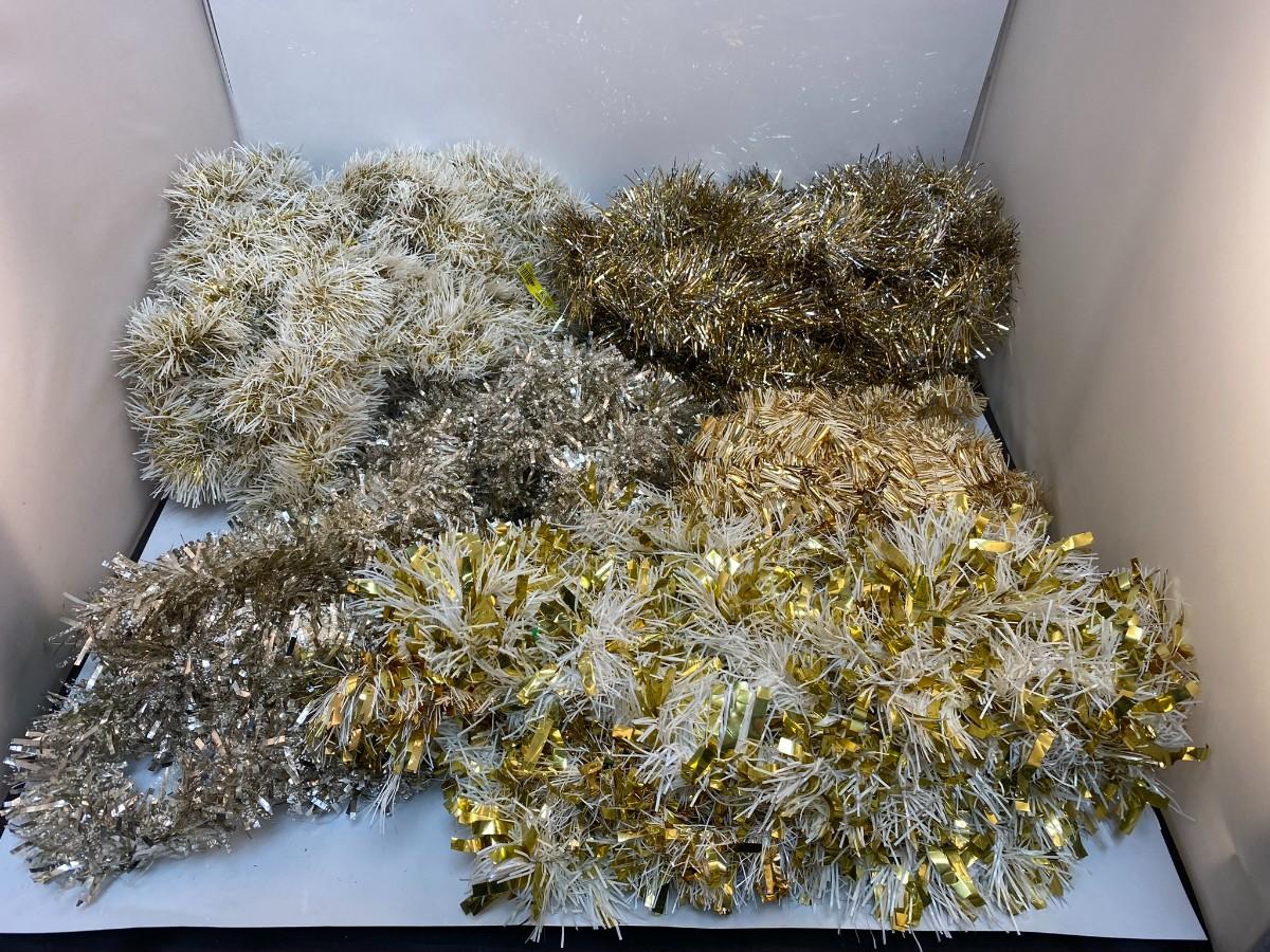 Vintage Mixed Lot of Gold Silver White Christmas Tree Holiday Metallic Foil Garland. Different variations.