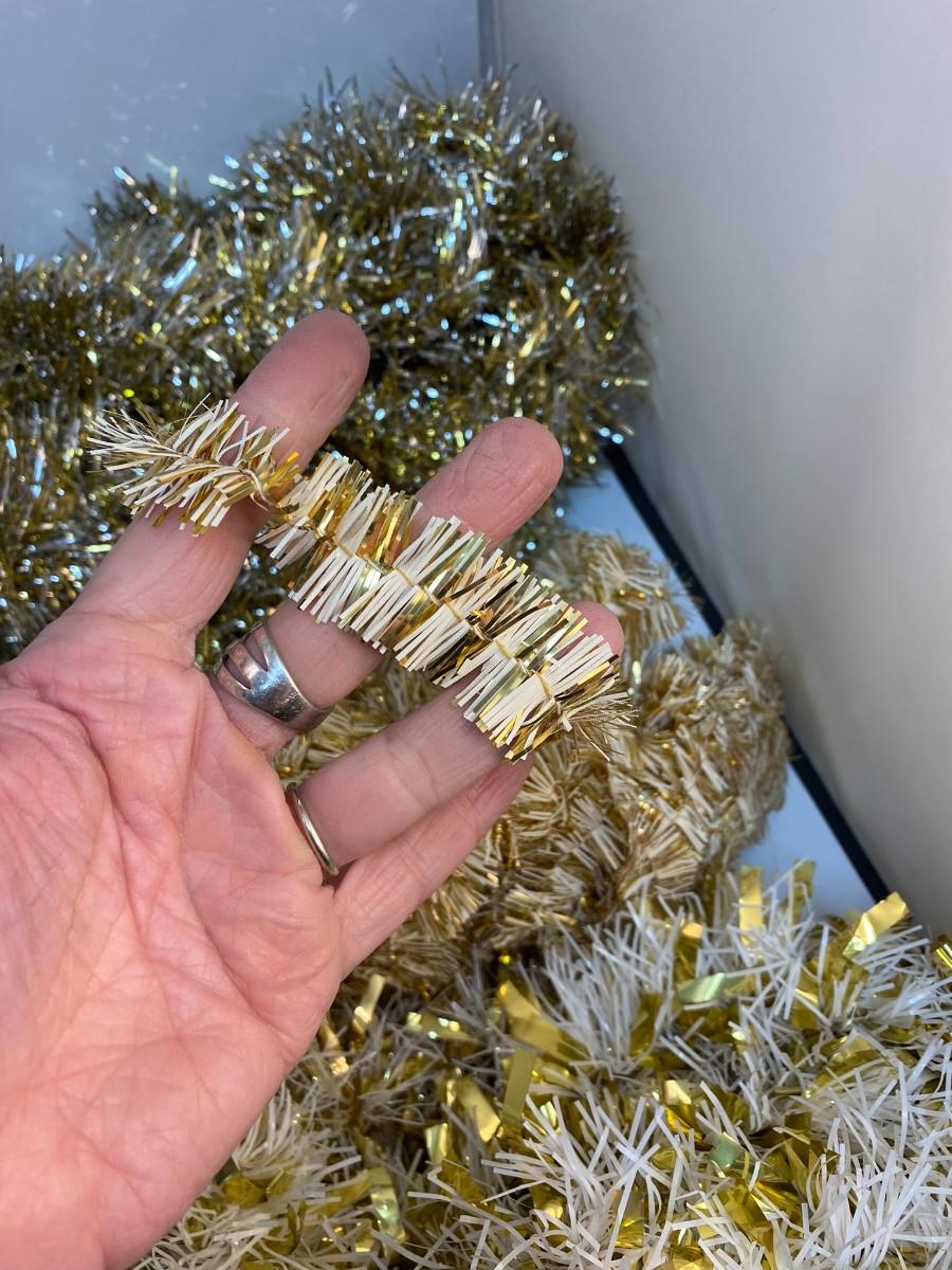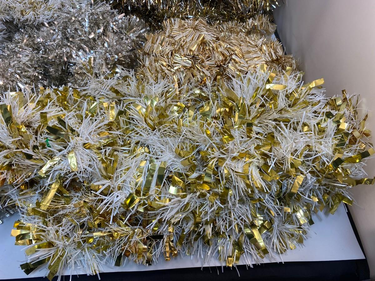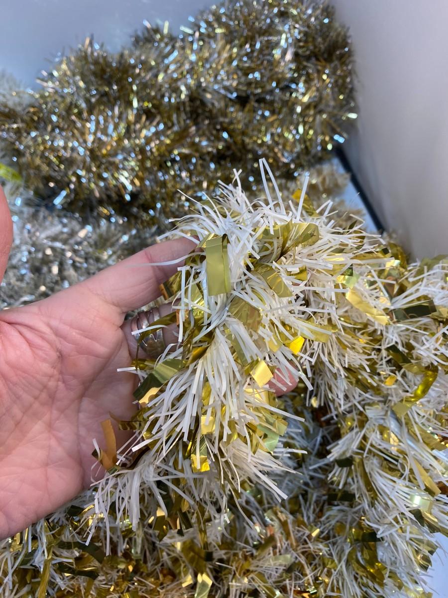 Vintage Mixed Lot of Gold Silver White Christmas Tree Holiday Metallic Foil Garland. Different variations.