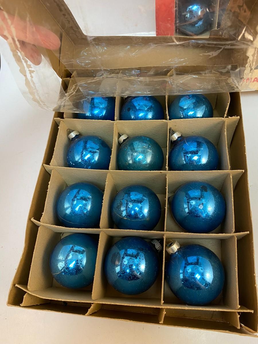 Vintage Three Boxes of Blue Shiny Brite Franke Blown Glass Tree Ball Ornaments