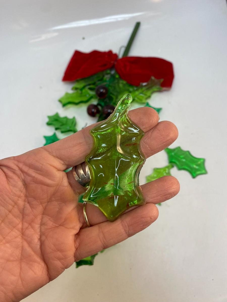 Vintage Colored Lucite Plastic Holly Leaf & Berry Christmas Holiday Decor