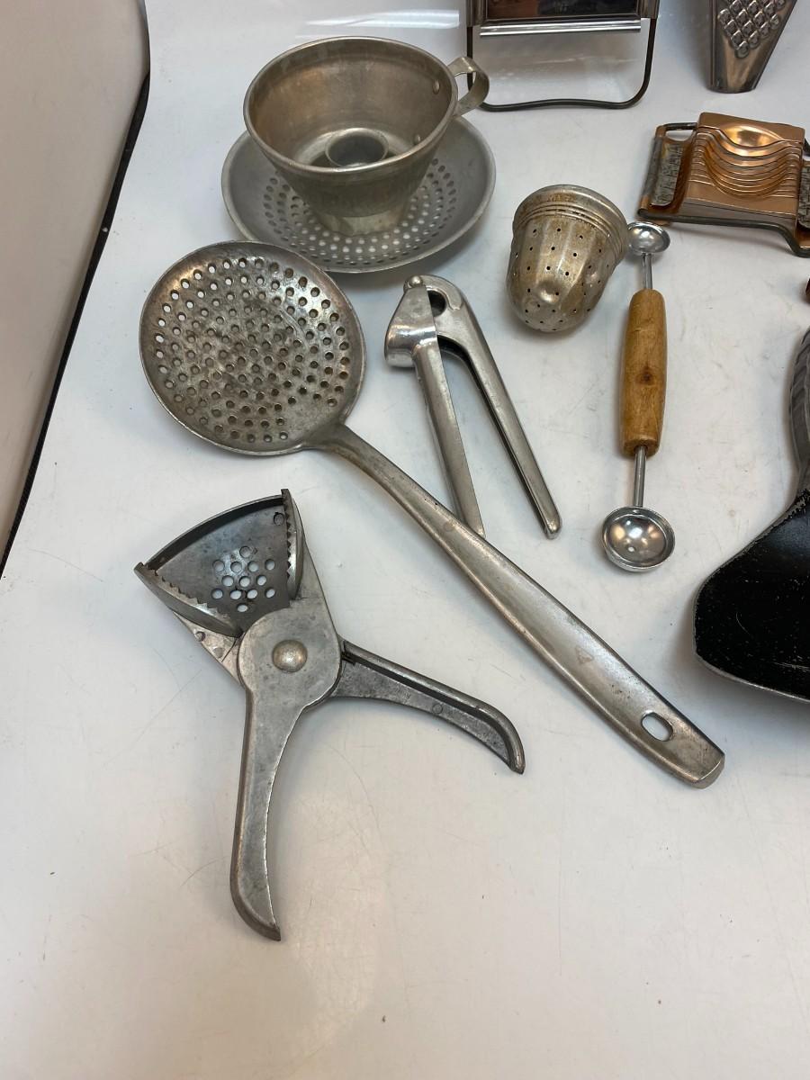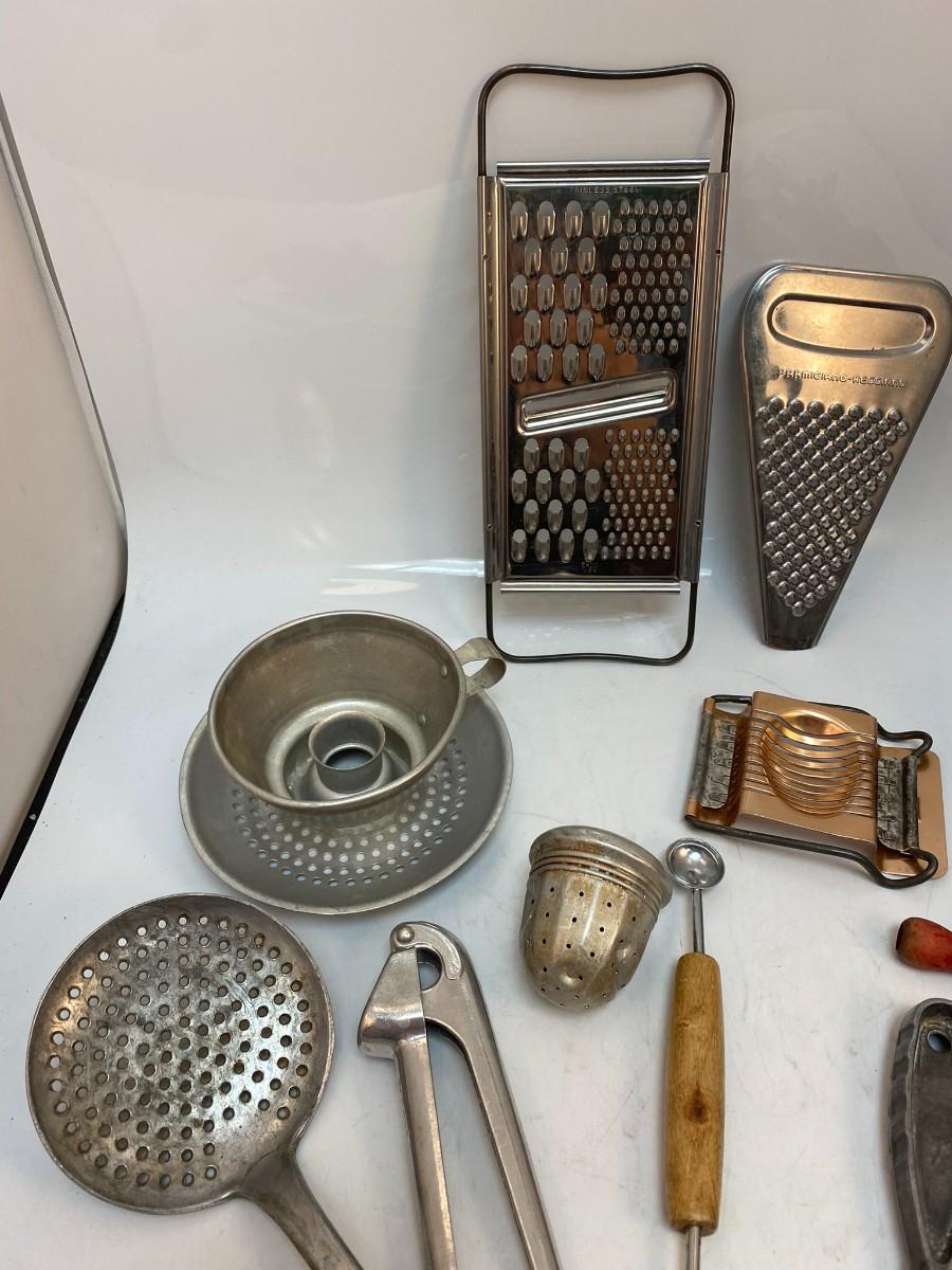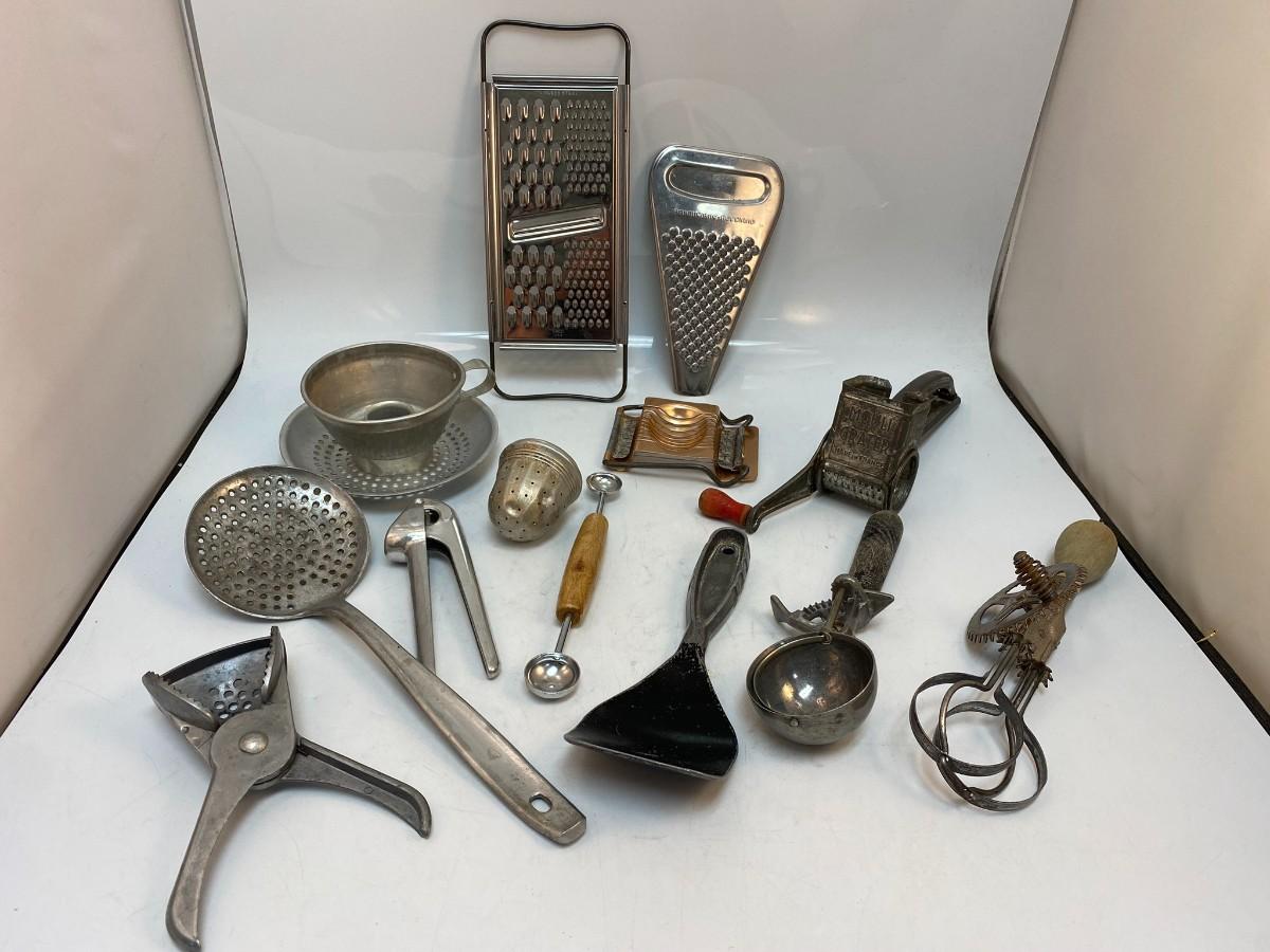 Vintage Metal Kitchenware Gadgets Shredders Presses Scoops Beater