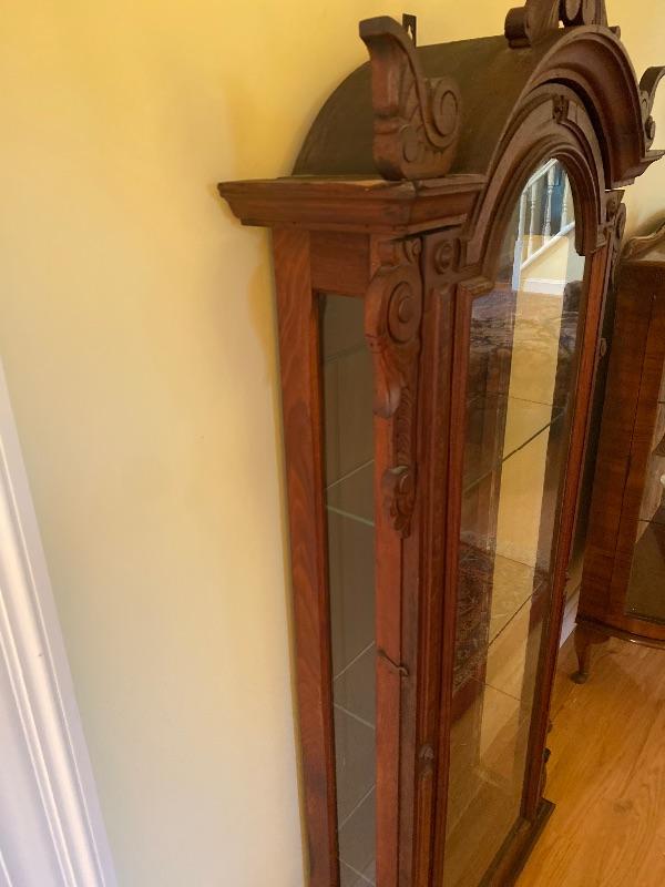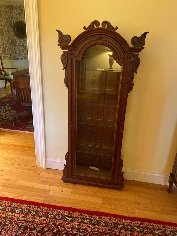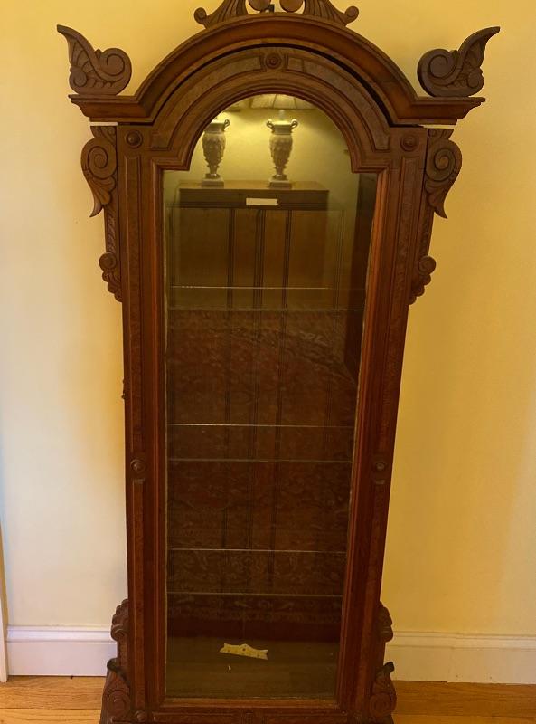 445: Antique Victorian Walnut Clock Case/ Display Wall Cabinet