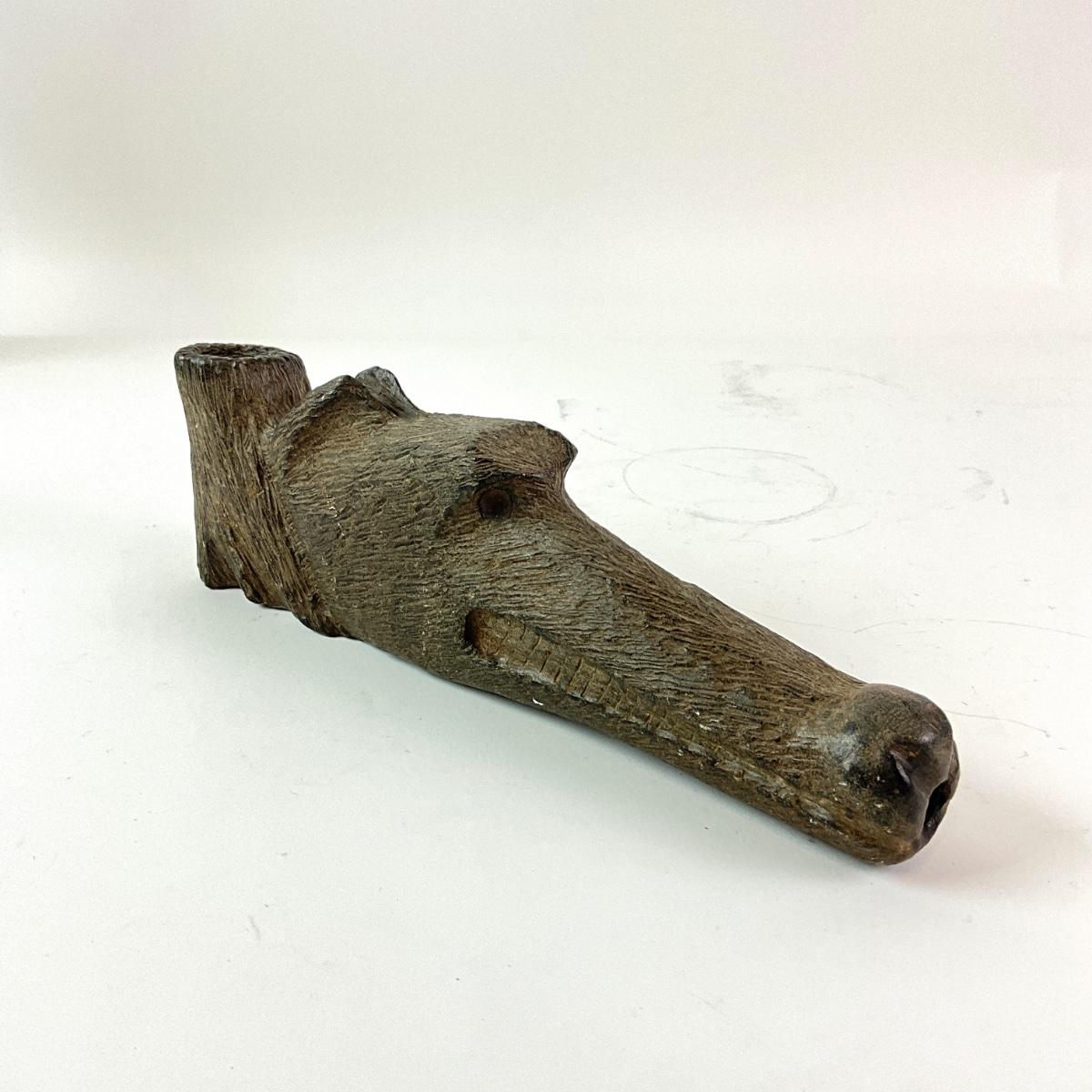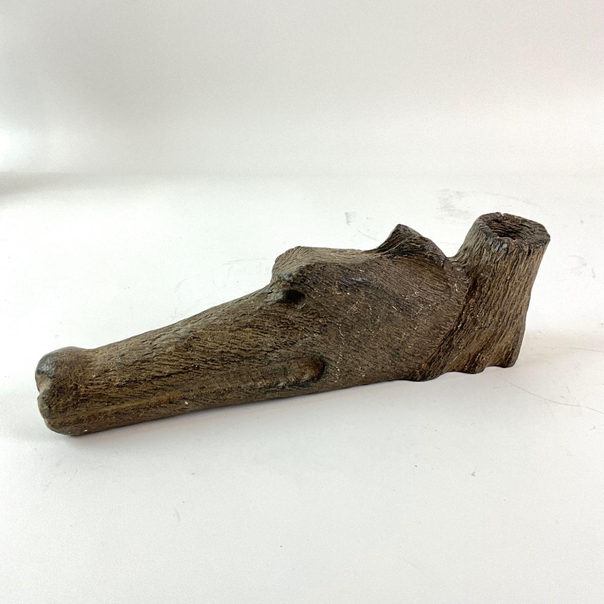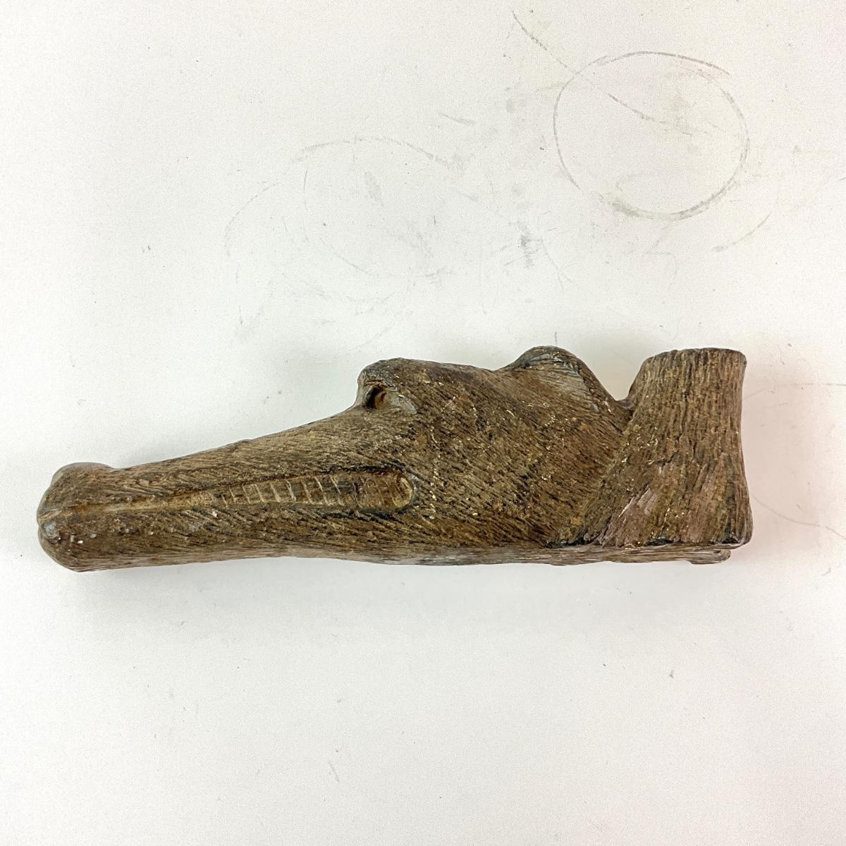 445 Artisan made 20th Century Hand carved Steatite Alligator Pipe