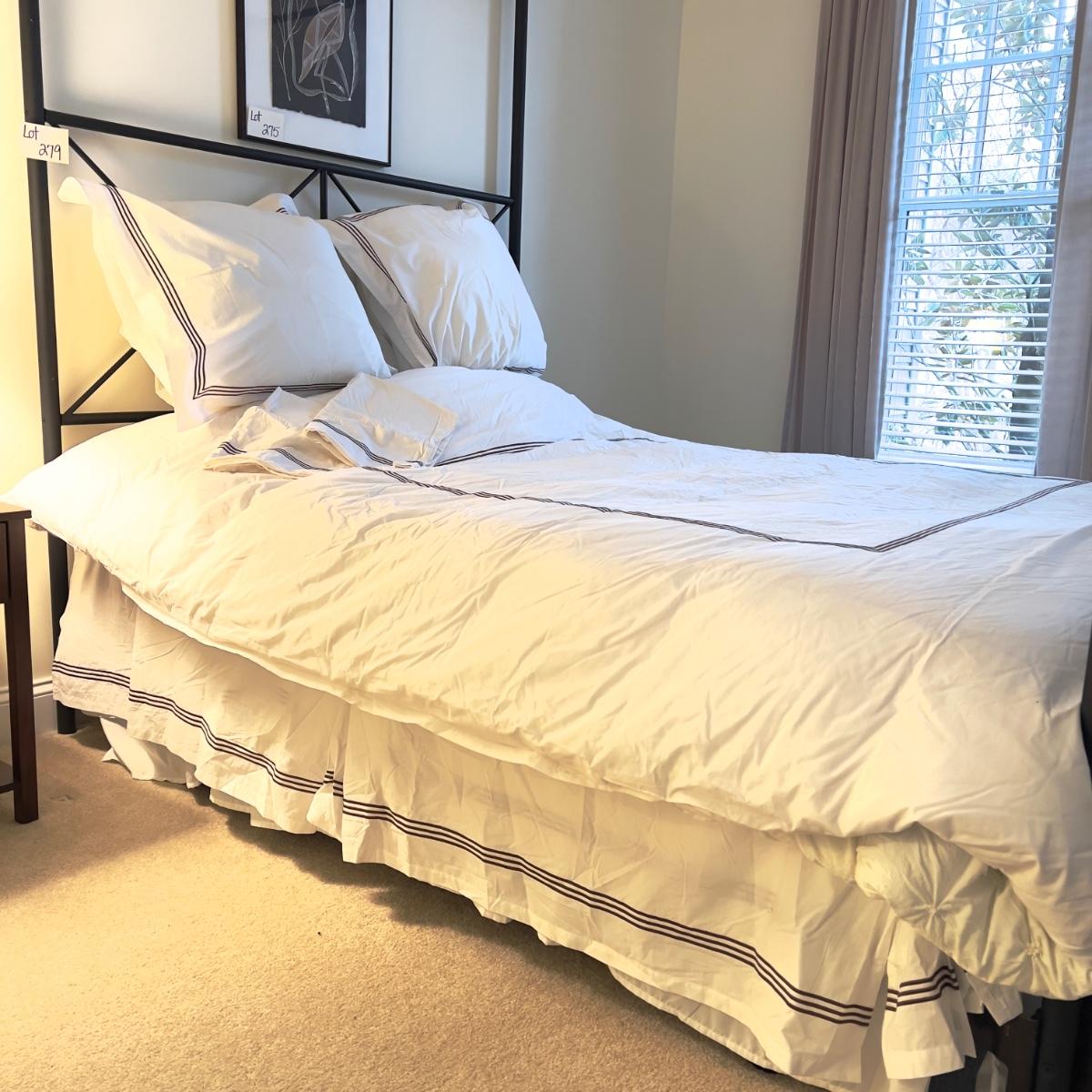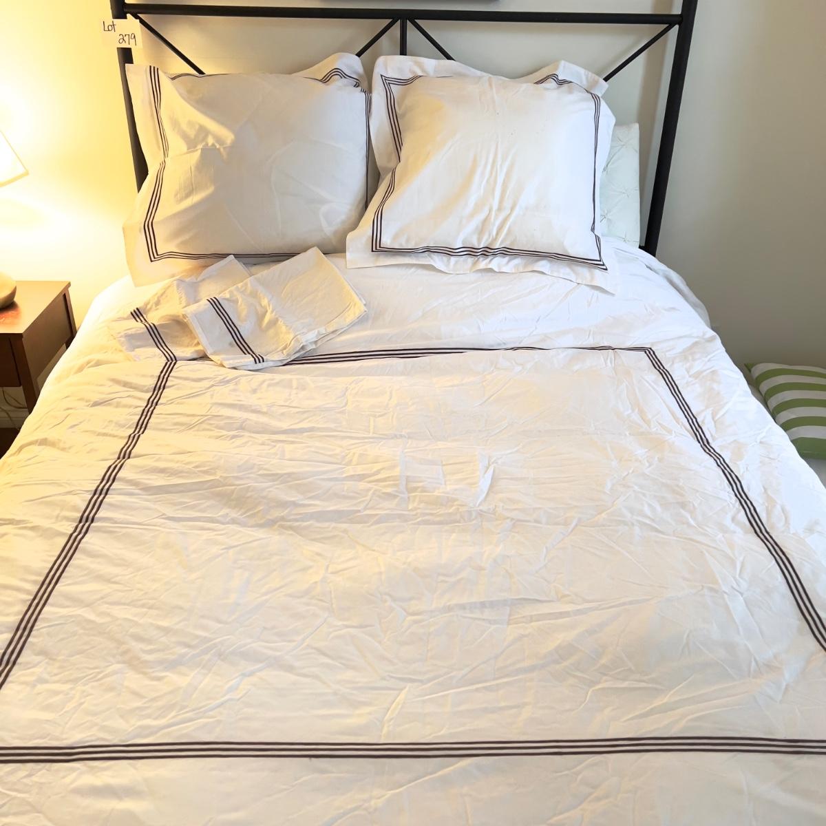 queen size duvet with insert, 2 pillow cases, with two Euro pillows and queen dust ruffle.
