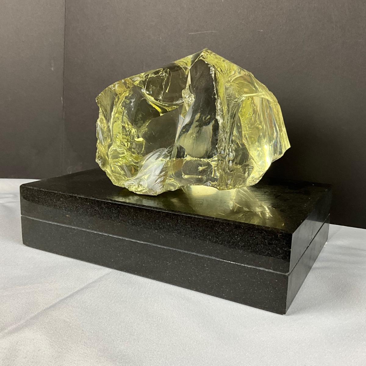 446 Large Cut Volcanic Glass / Crystal Specimen on Granite Base