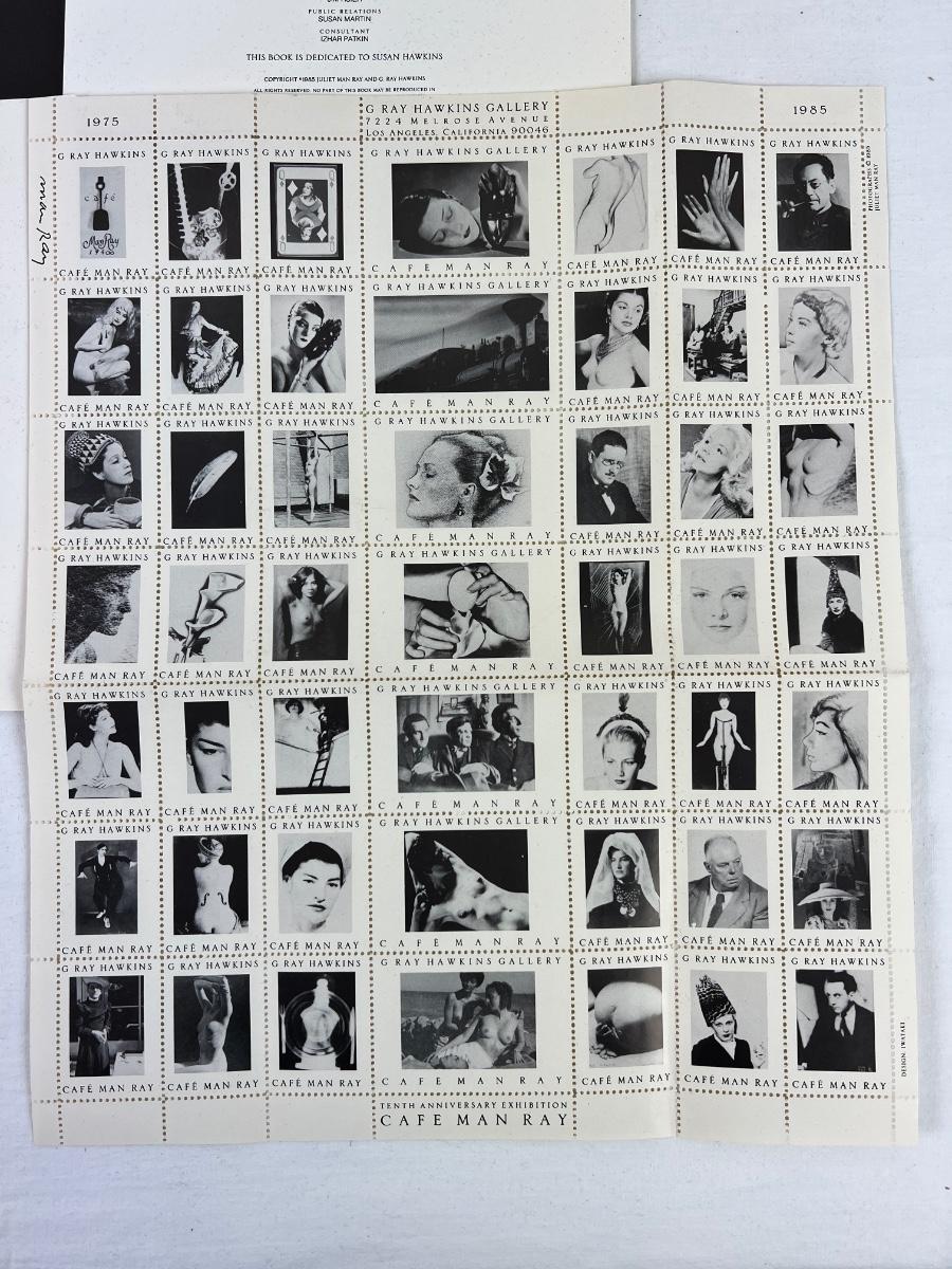The Cafe Man Ray Exhibition Box Set By G Ray Hawkins Gallery. Includes 2 souvenir matches, matches type cover, button pin, 49 gummed stamps, small photo gallery, acknowledgements, written interview and more.