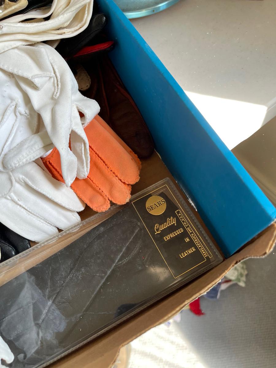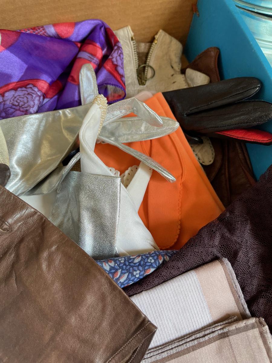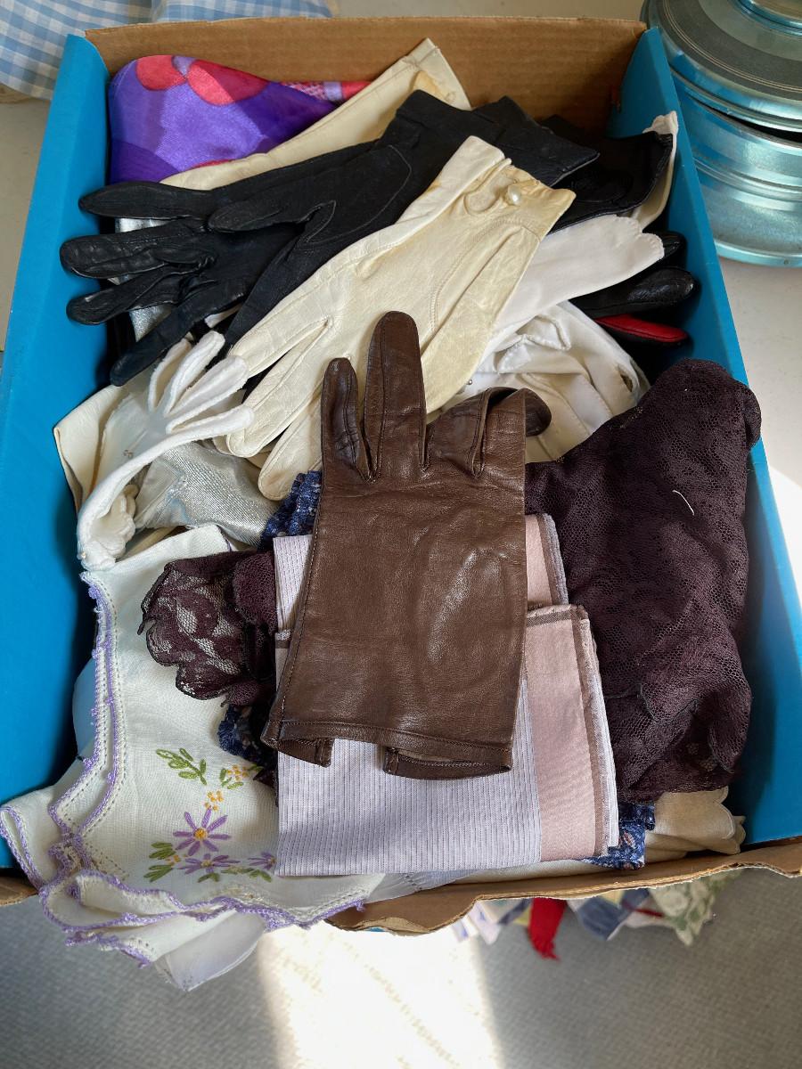 #447U Tray of Ladies Glove and Scarves, Collectible